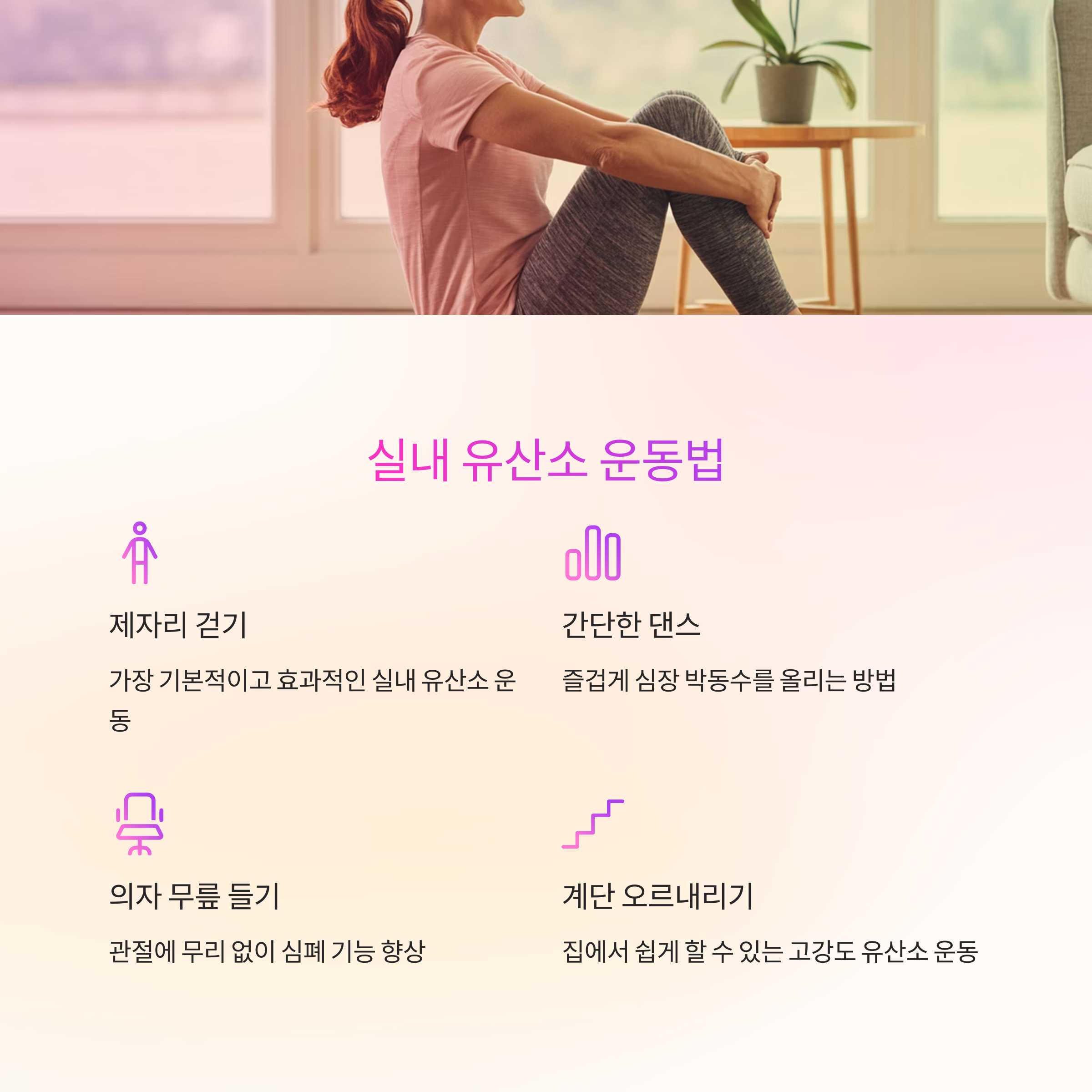 실외 활동이 어렵다면 집에서도 충분히 유산소 운동이 가능합니다.