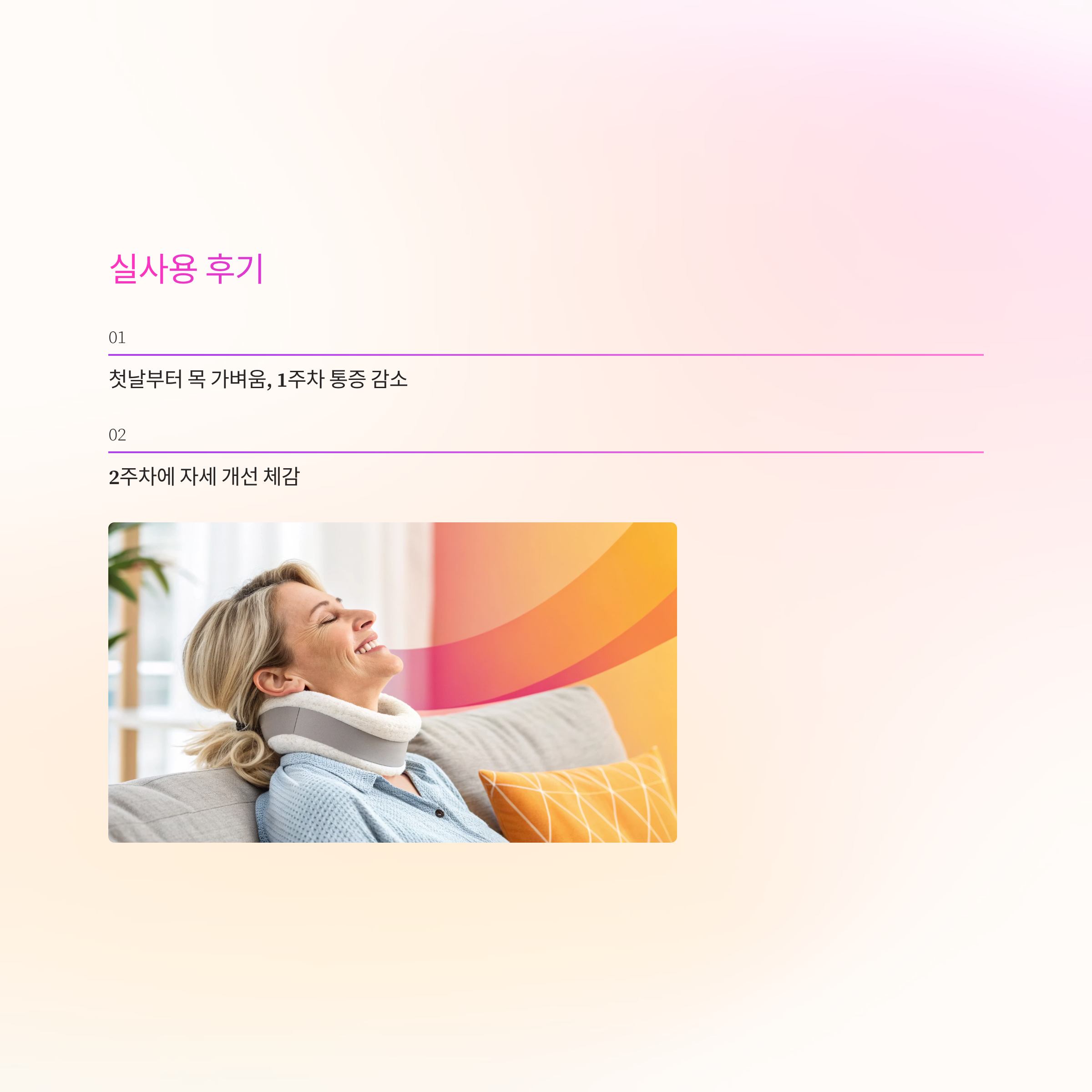 즉각적인 통증 완화 + 장기적인 자세 개선 효과를 동시에 느낀 경험이었습니다. 단, 매일 꾸준히 사용하는 것이 핵심입니다.
