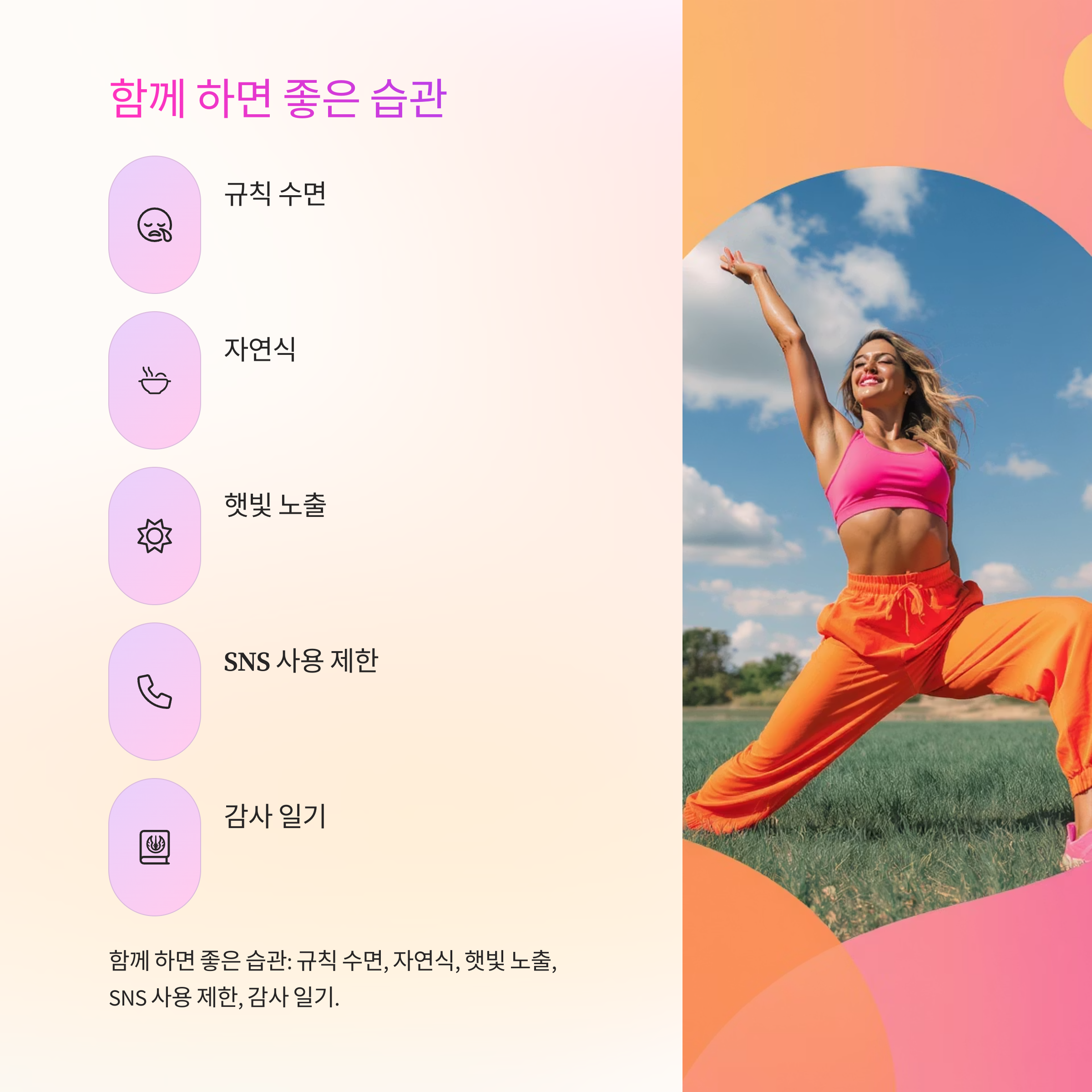 7. 함께 하면 좋은 습관날씨가 어두워지고 낮 시간이 짧아지면 기분이 가라앉기 쉽습니다. 이것은 단순한 우울감이 아니라 **계절성 우울증(SAD)**일 수 있습니다. 자연광과 걷기를 조합한 습관으로 충분히 개선 가능합니다.