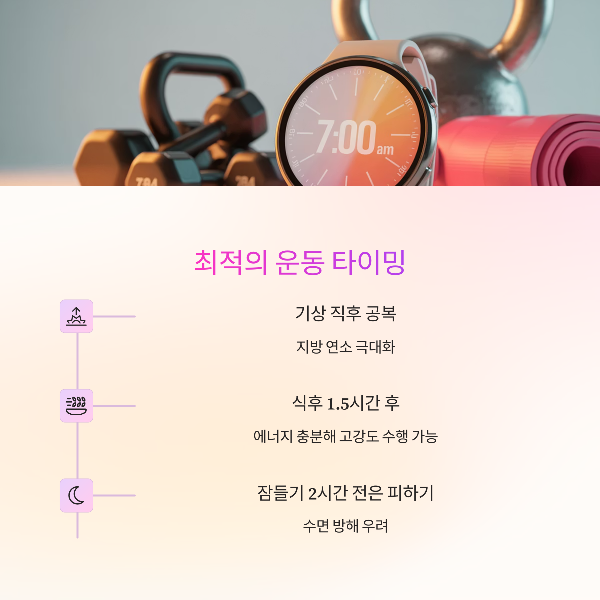• 기상 직후 공복에 실시: 지방 연소 극대화