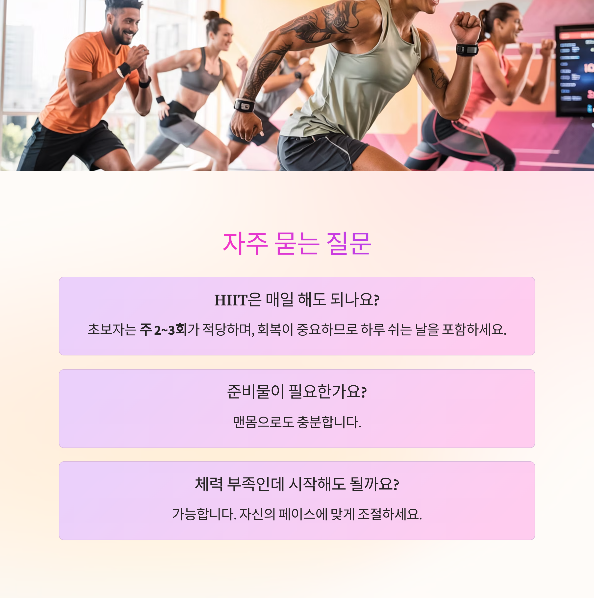 이처럼 HIIT는 짧은 시간에 빠른 효과를 기대할 수 있어