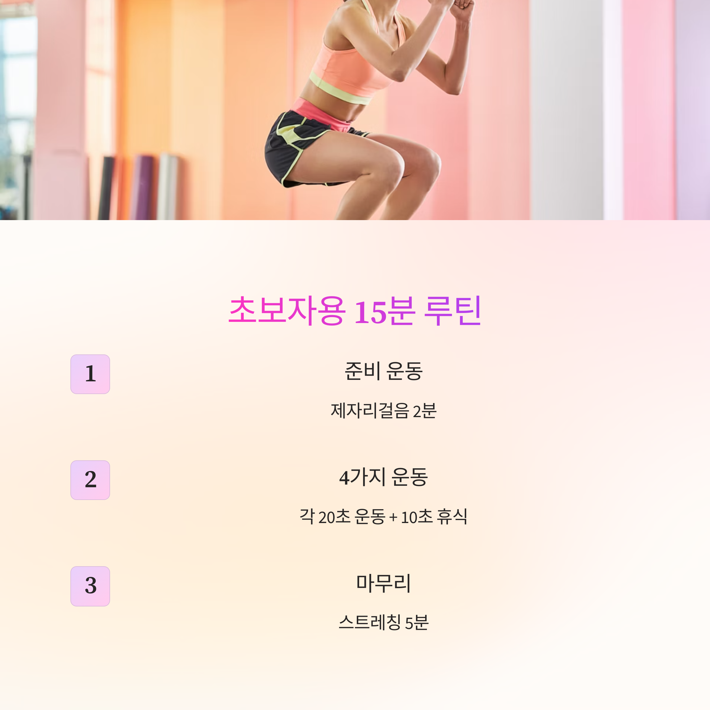 3. HIIT 추천 운동 루틴 예시 (초보자용 15분 루틴)