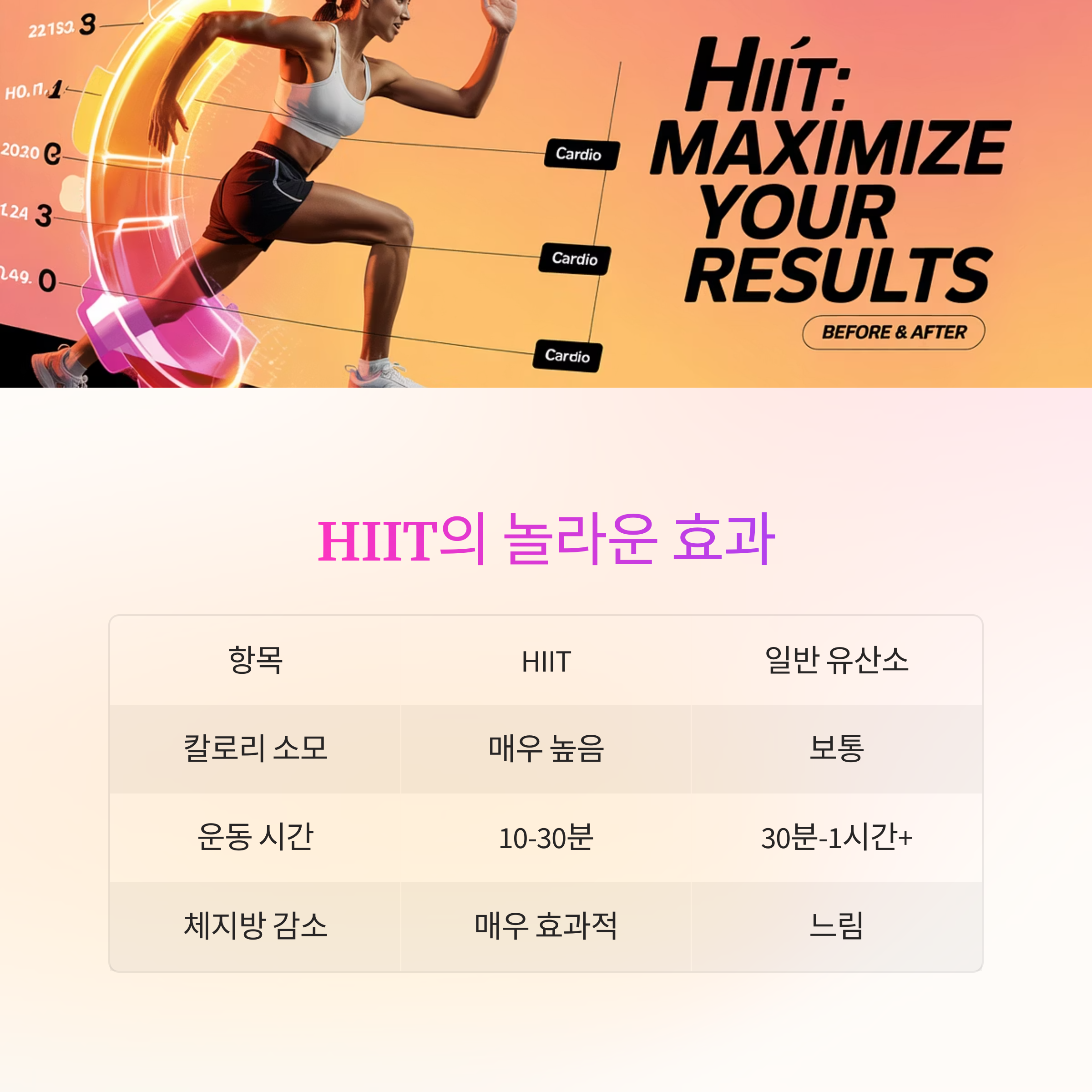 짧지만 강력한 변화는 HIIT만의 장점입니다.