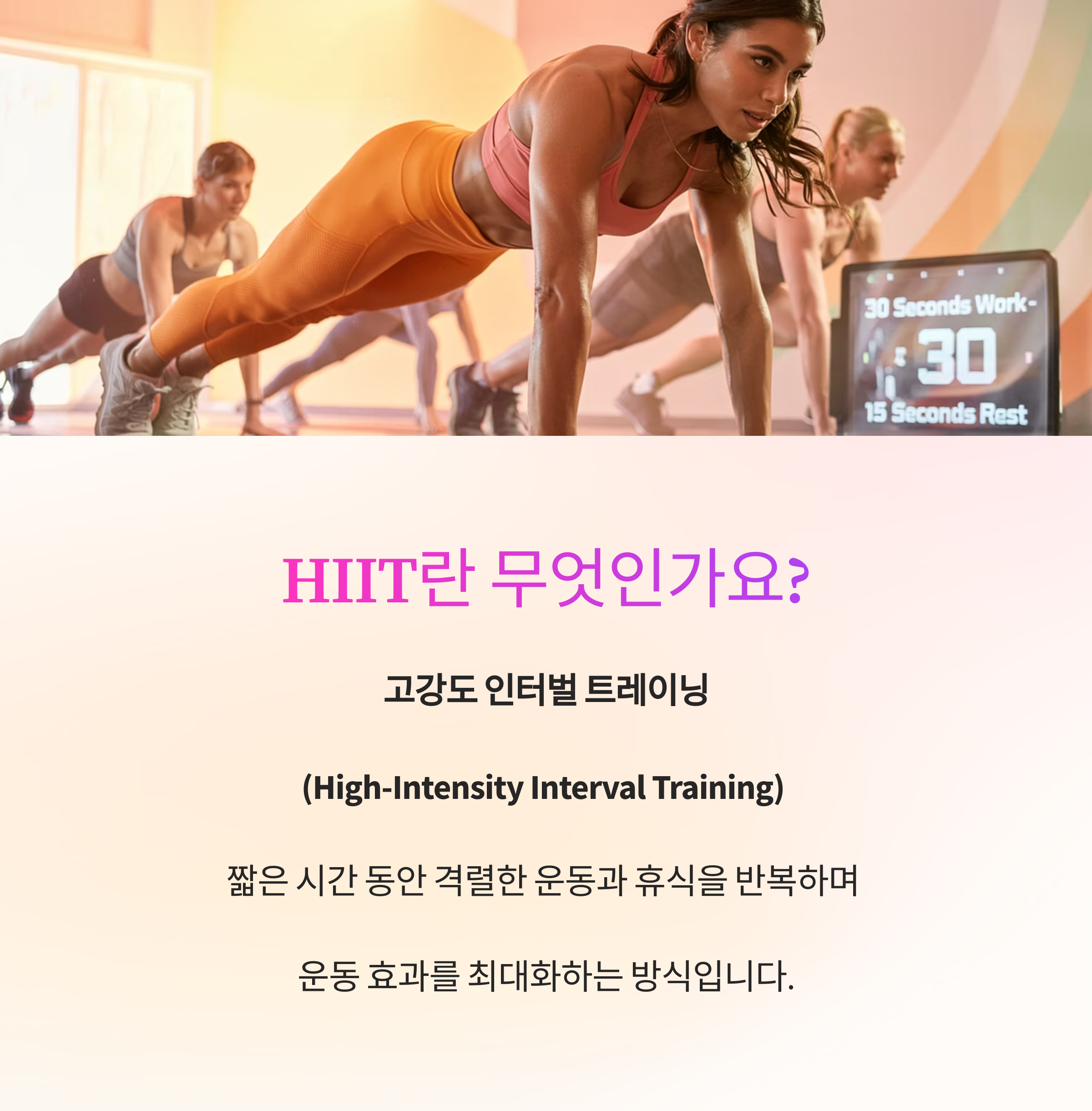 이처럼 HIIT는 짧은 시간에 빠른 효과를 기대할 수 있어
