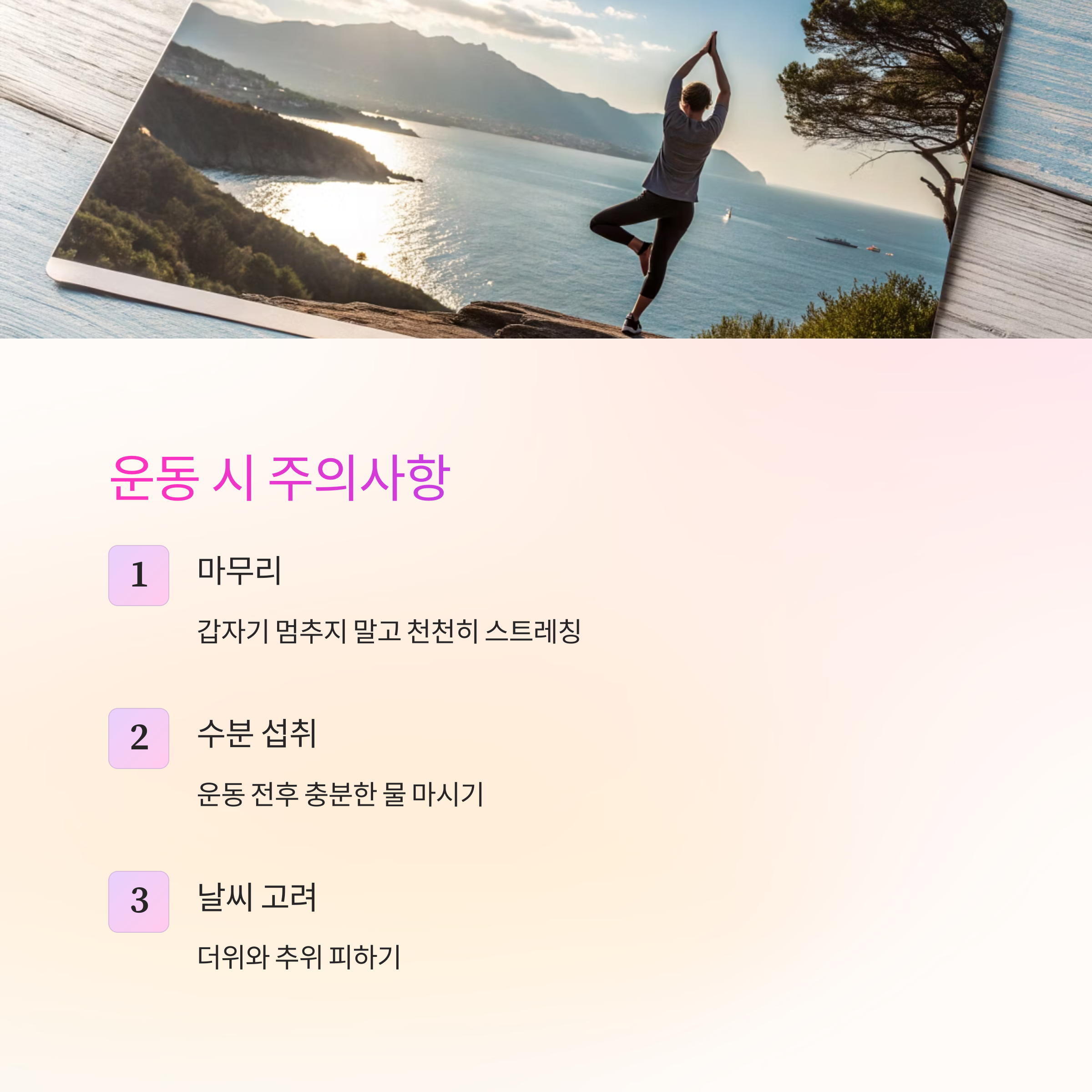 방법과 운동 시 꼭 알아야 할 주의사항을 상세히 알려드립니다.