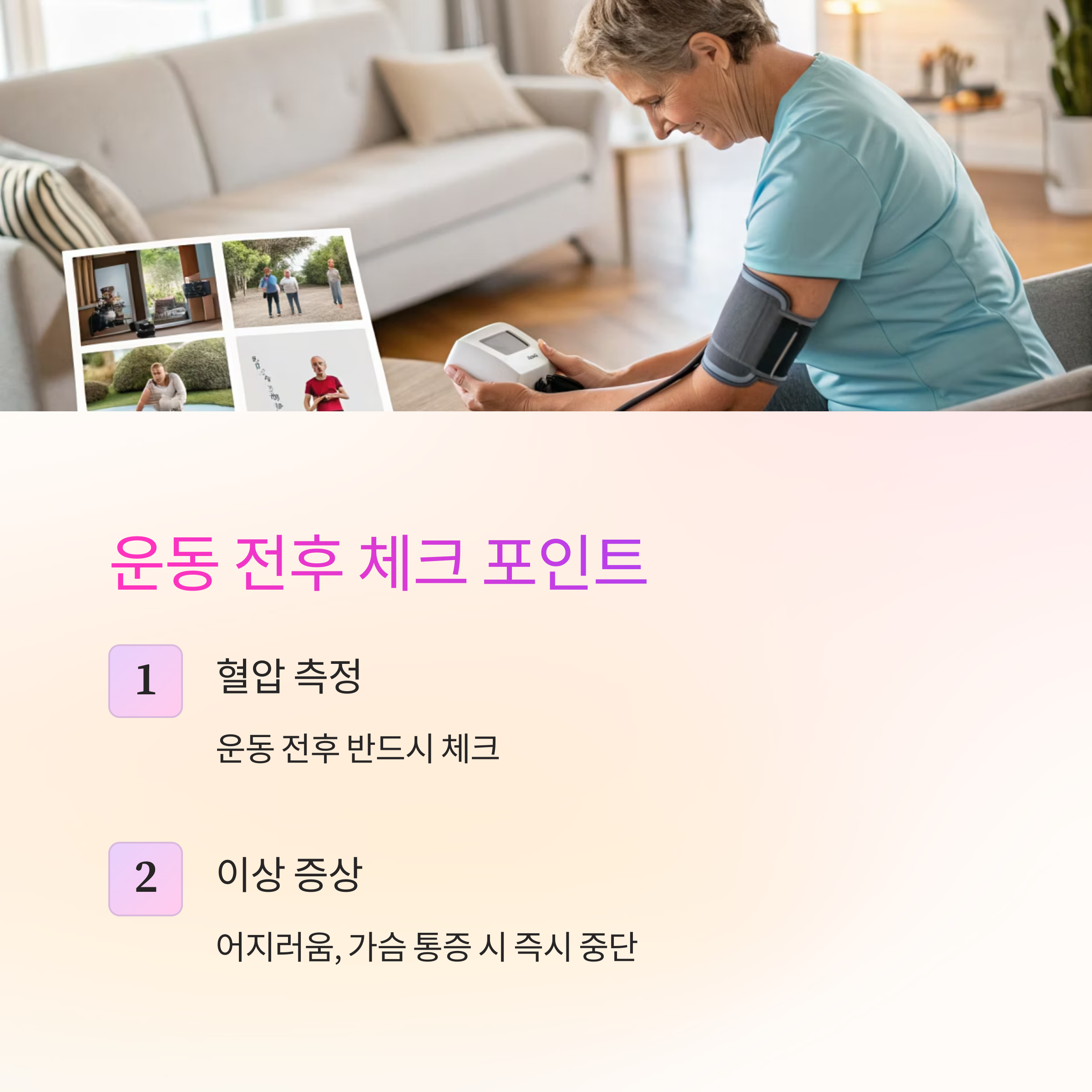 고혈압 환자는 운동 강도를 낮게 유지하는 것이 안전합니다.