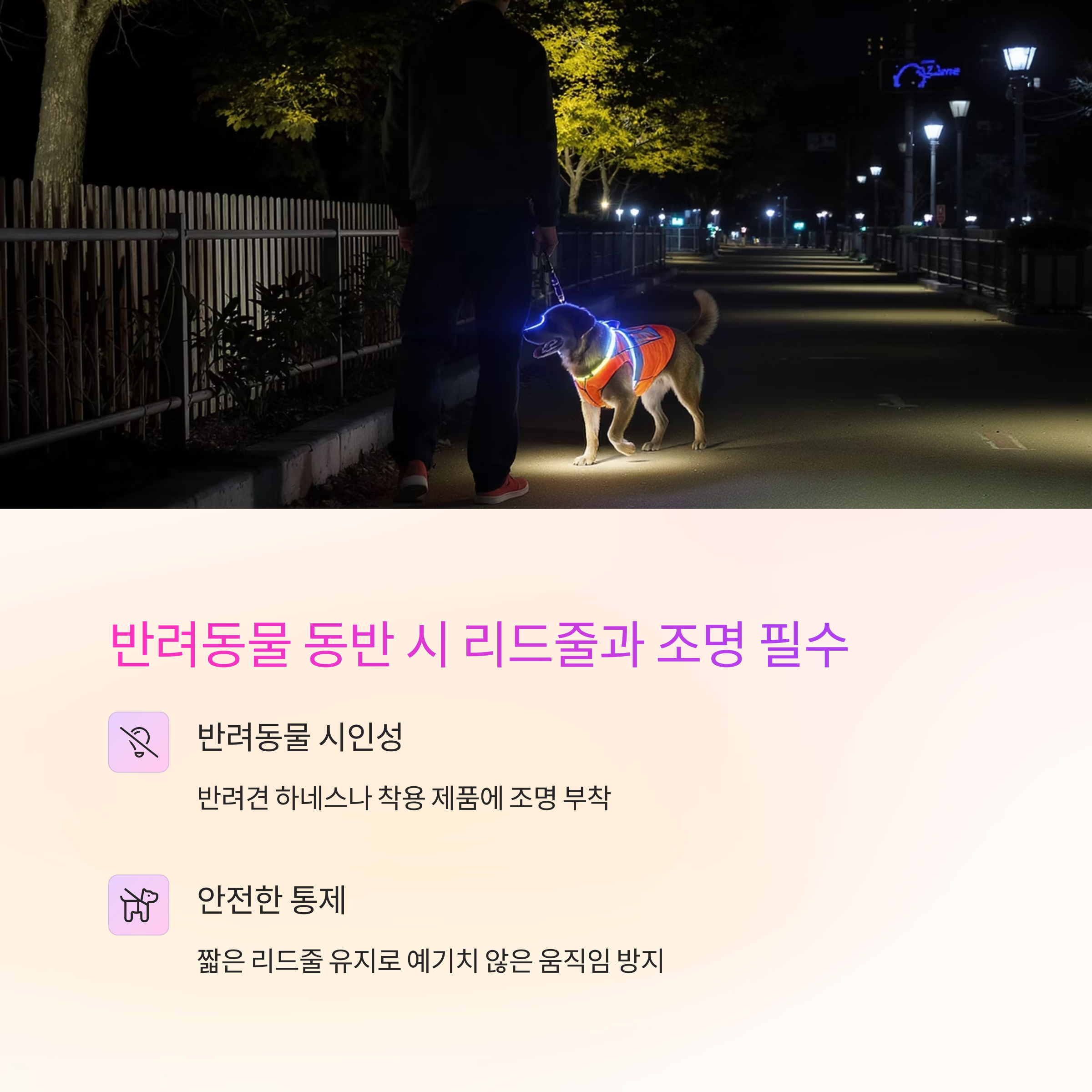 🐕 반려동물 동반 시 리드줄과 조명 필수