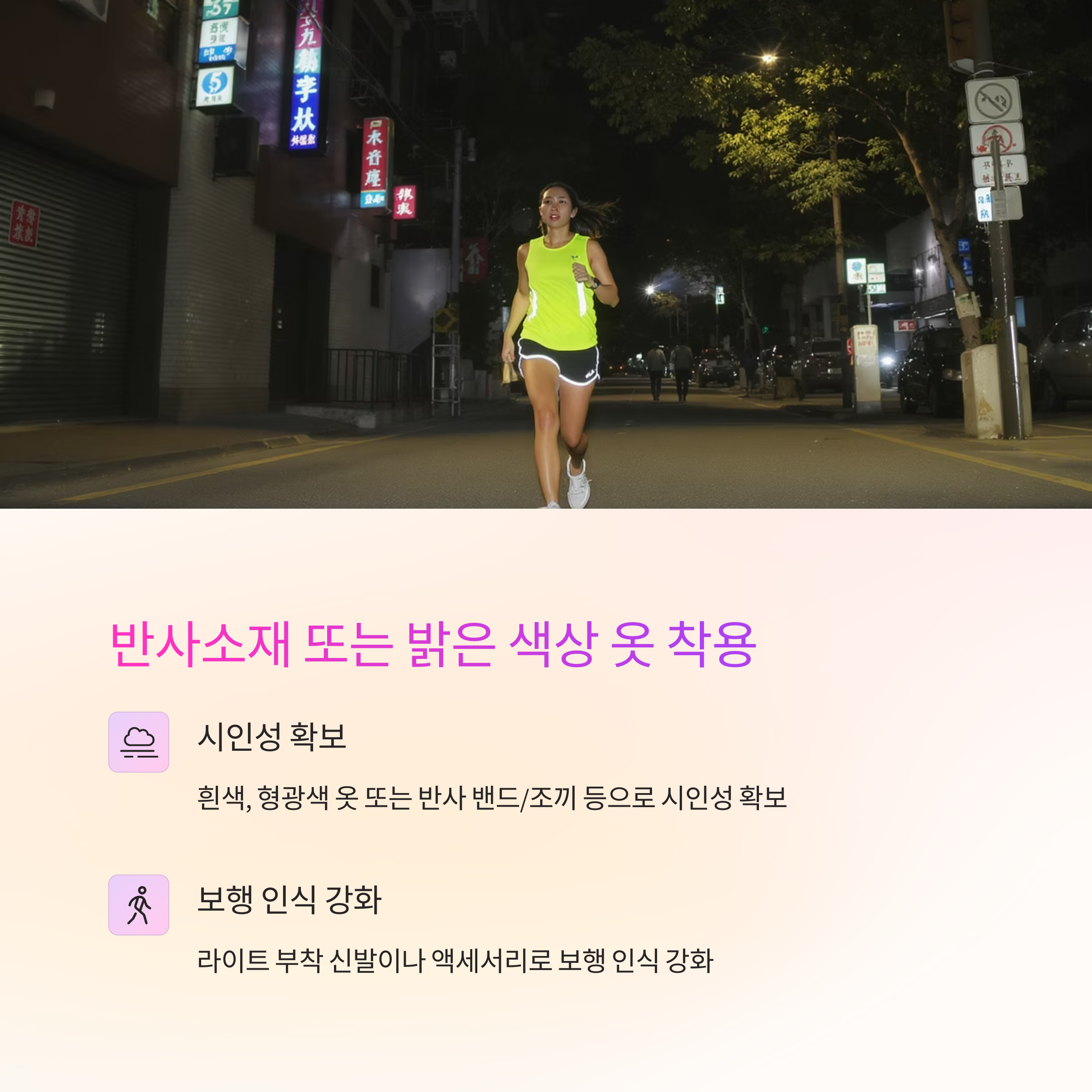 🧥 반사소재 또는 밝은 색상 옷 착용