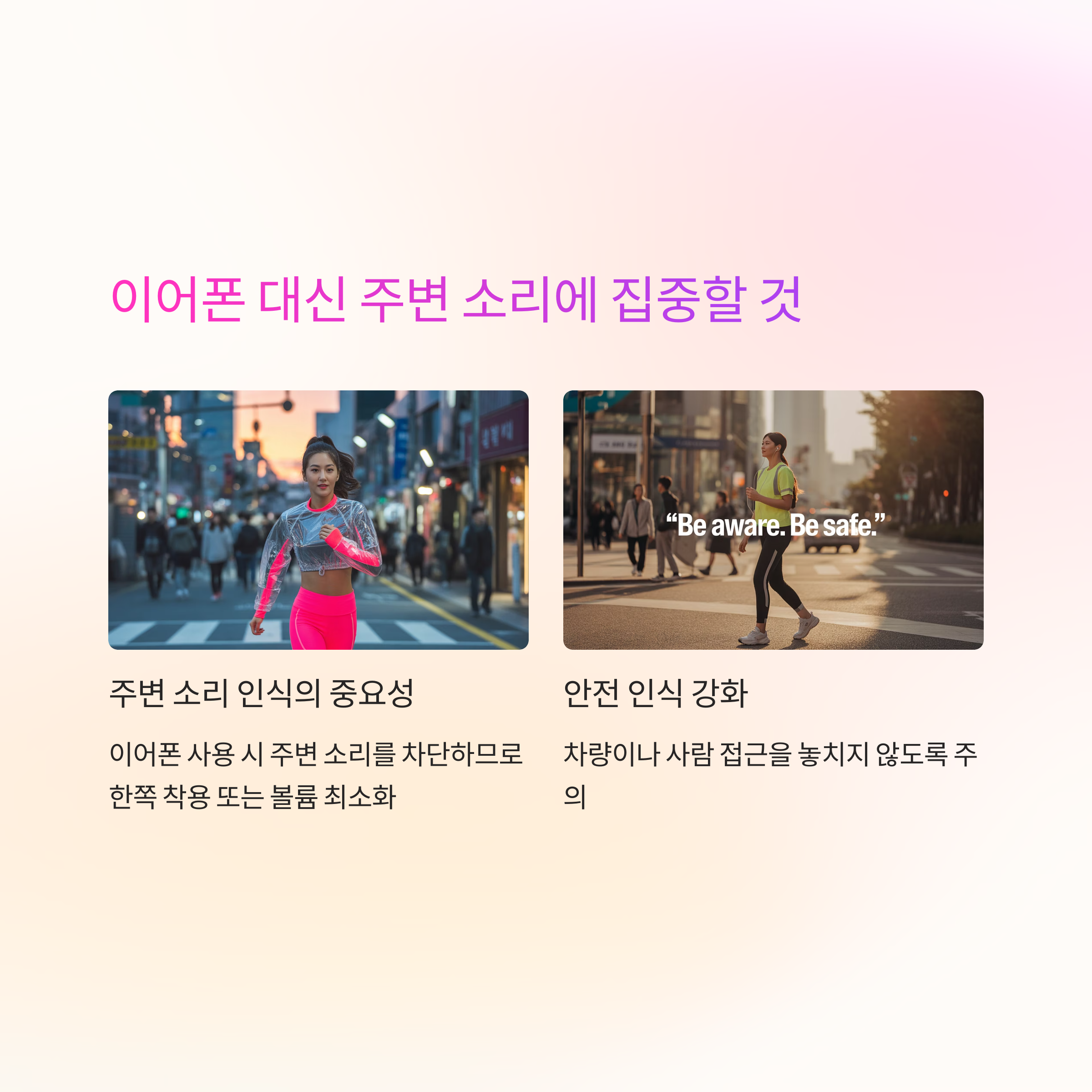 🎧 이어폰 대신 주변 소리에 집중할 것