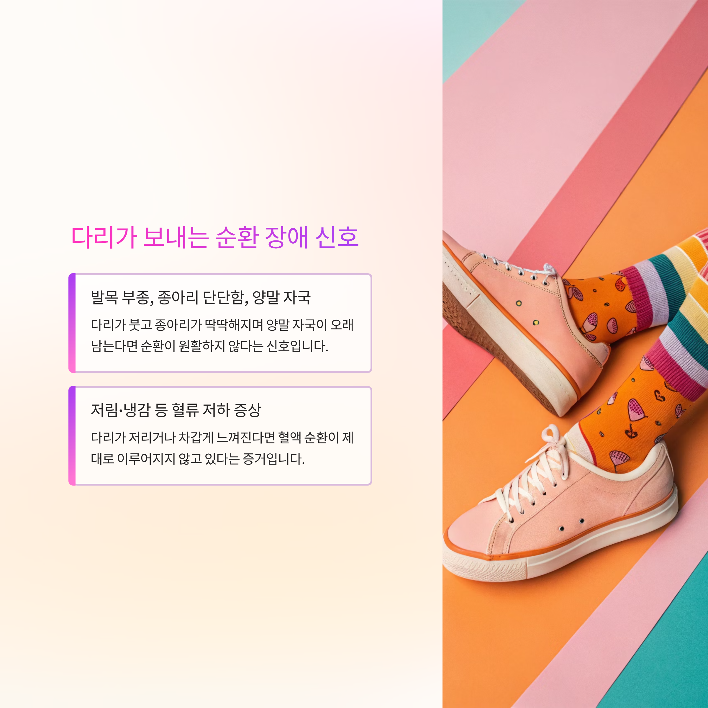 - 말초혈관질환·심부정맥혈전증 의심 시 전문가 상담