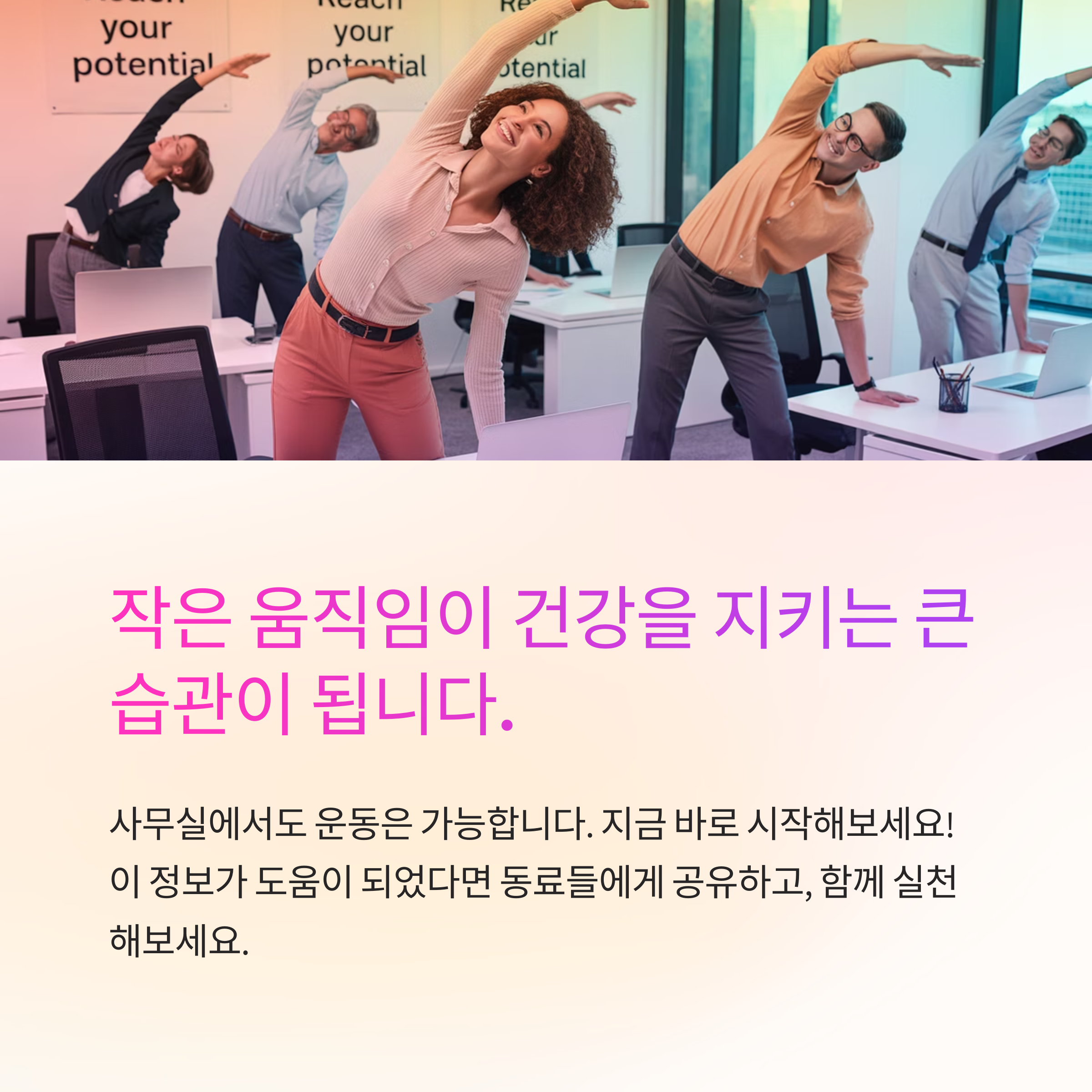 사무실에서도 운동은 가능합니다. 작은 움직임이 쌓여 건강을 지키는 큰 습관이 됩니다.