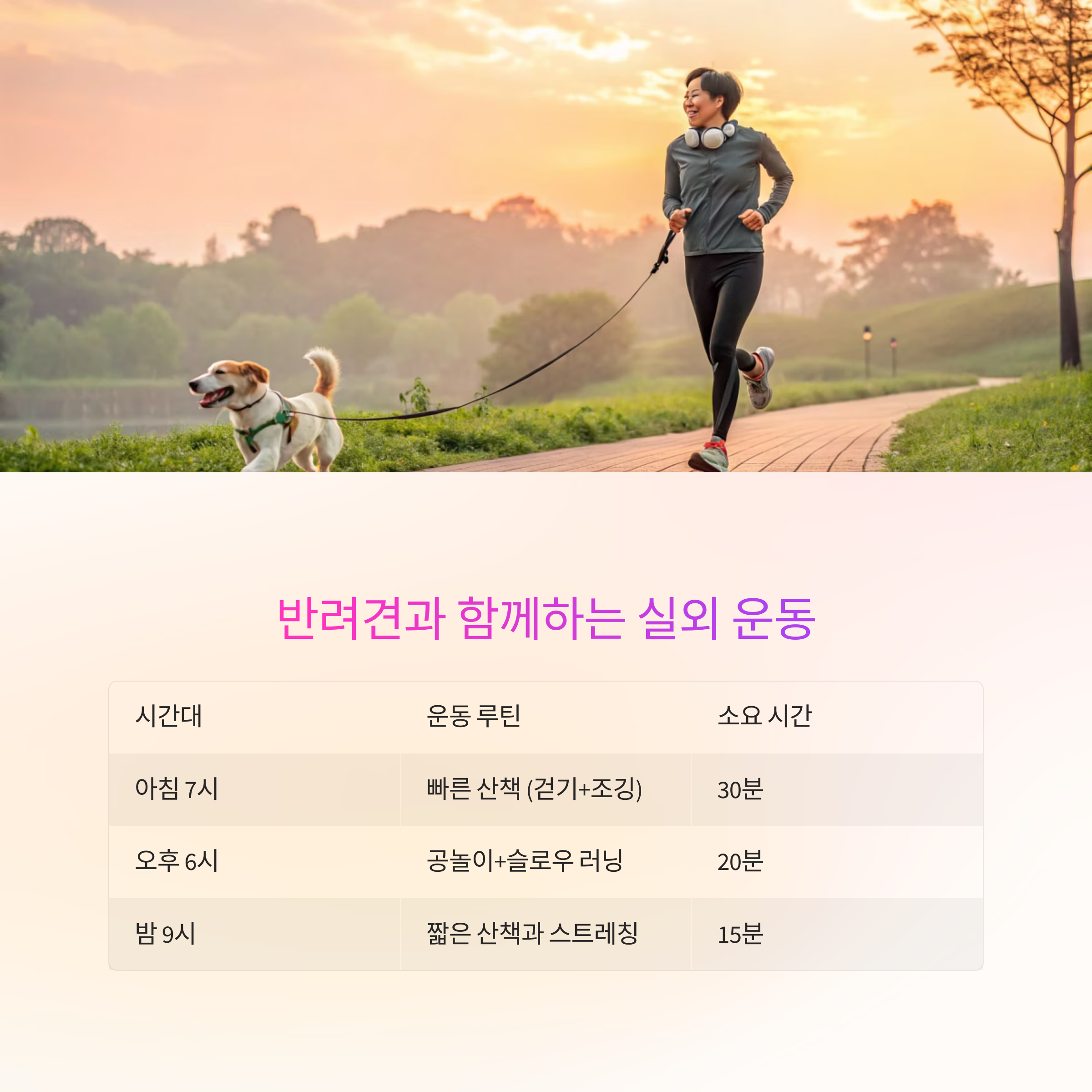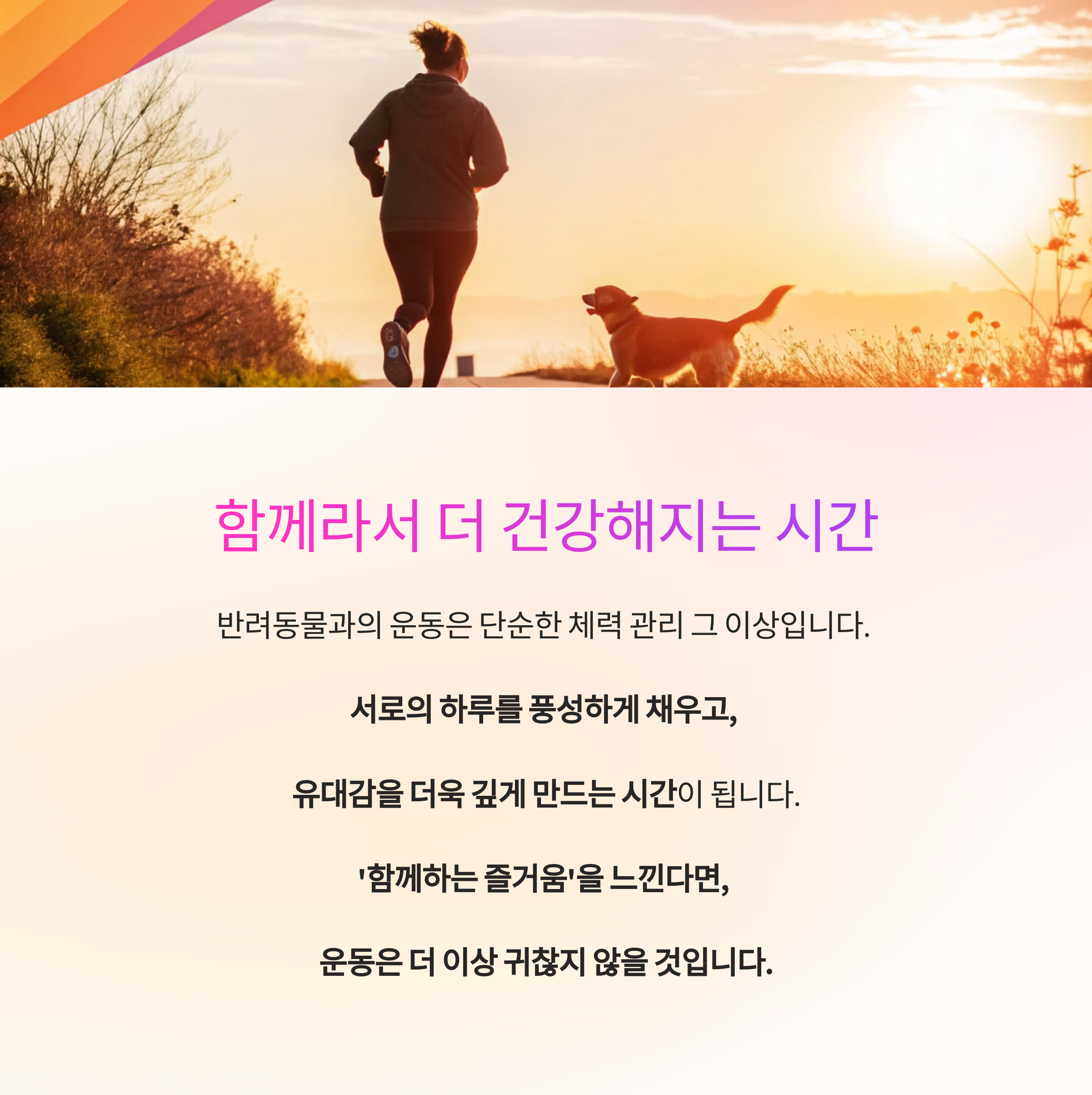 반려동물과의 운동은 단순한 체력 관리 그 이상입니다.