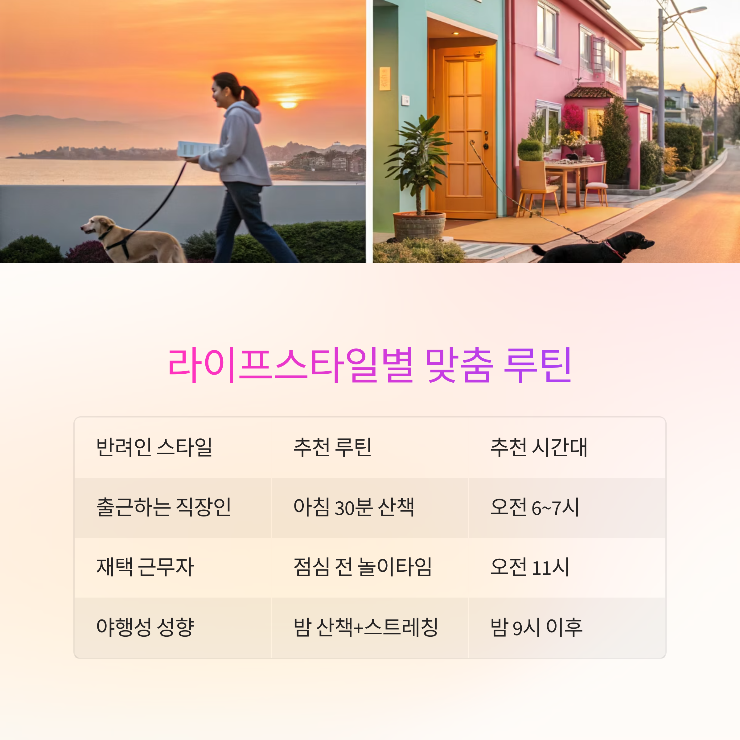 | 야행성 성향 | 밤 산책+가벼운 스트레칭 | 밤 9시 이후 |