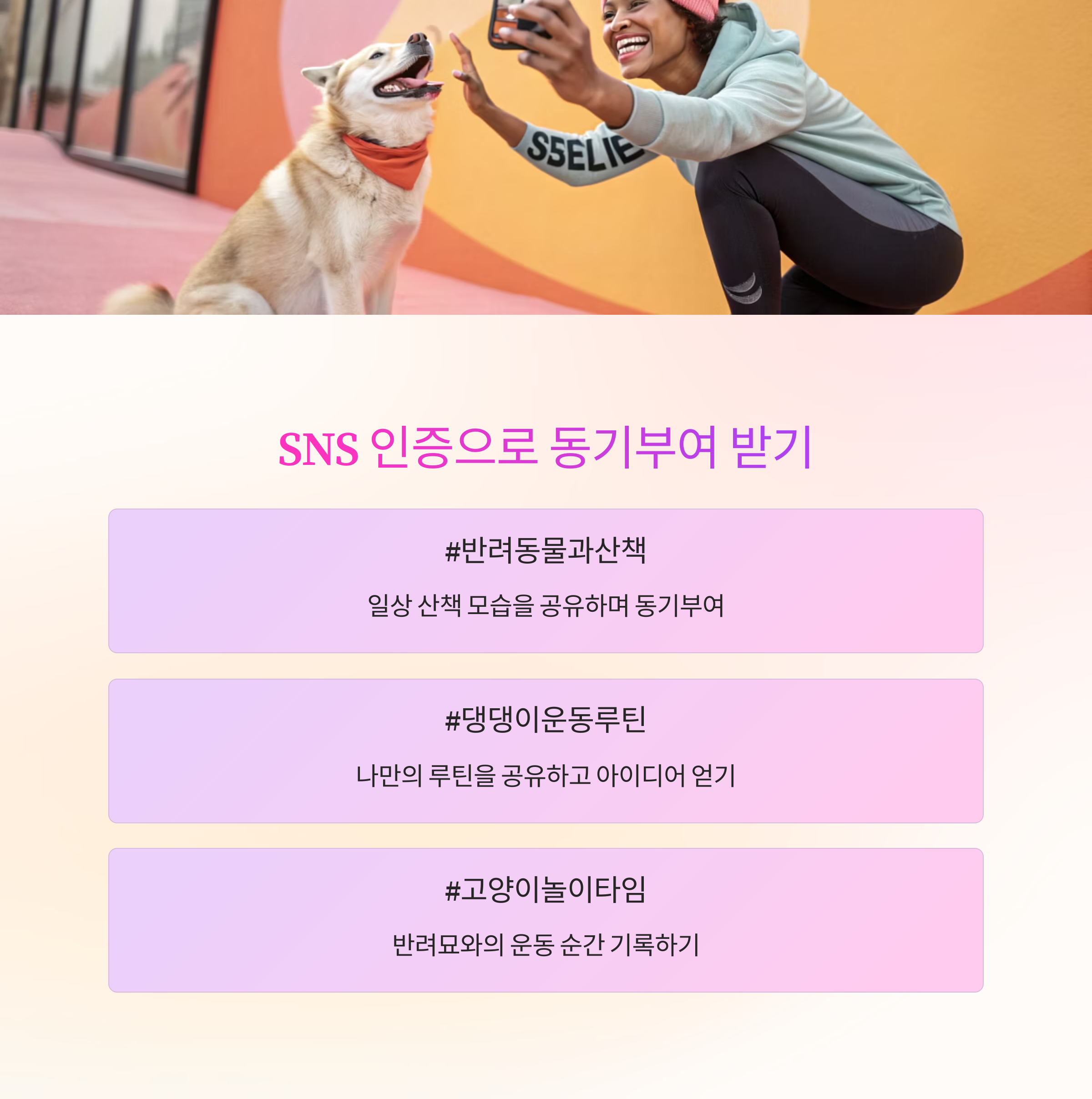 #반려동물과 산책, #댕댕이운동루틴 같은 해시태그로