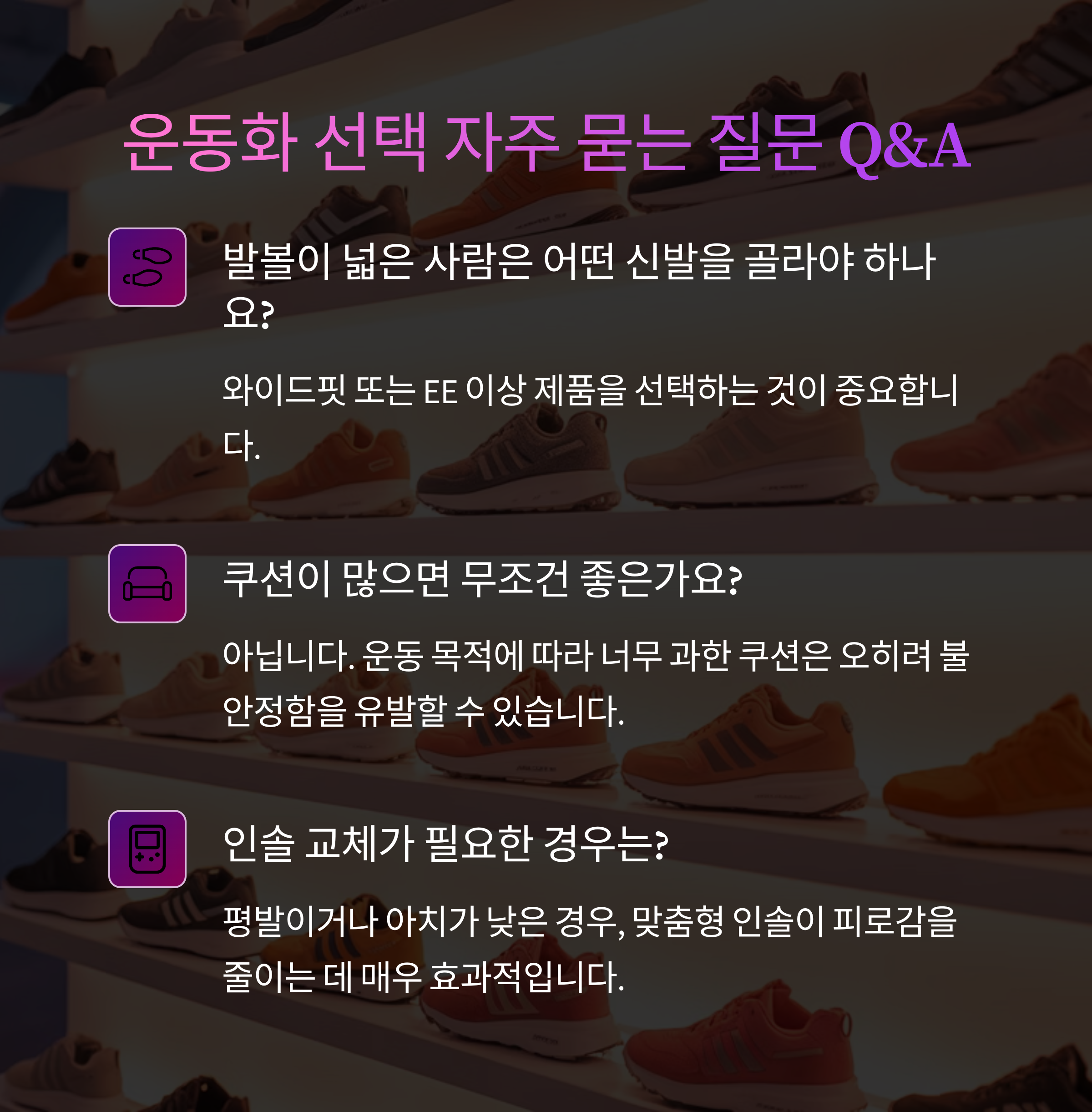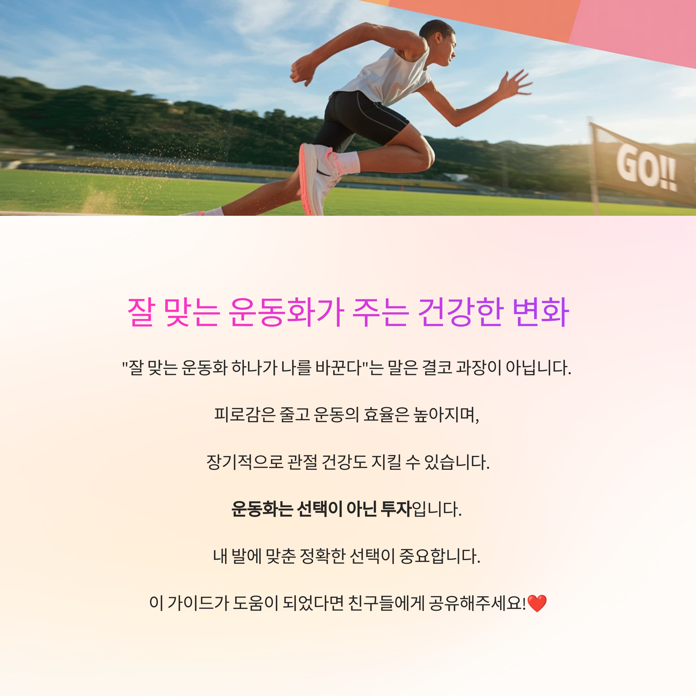 운동화는 선택이 아닌 투자입니다. 내 발에 맞춘 정확한 선택이 중요합니다.