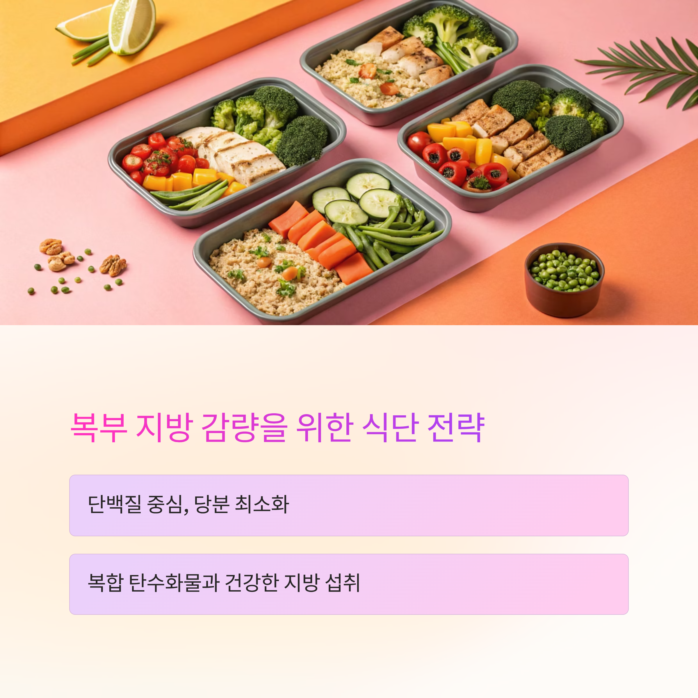 복부 지방은 운동보다 식단 관리가 더 큰 영향을 미칩니다. 체지방을 줄이려면 하루 섭취 칼로리를 기초대사량의 10~15% 낮게 유지해야 합니다.