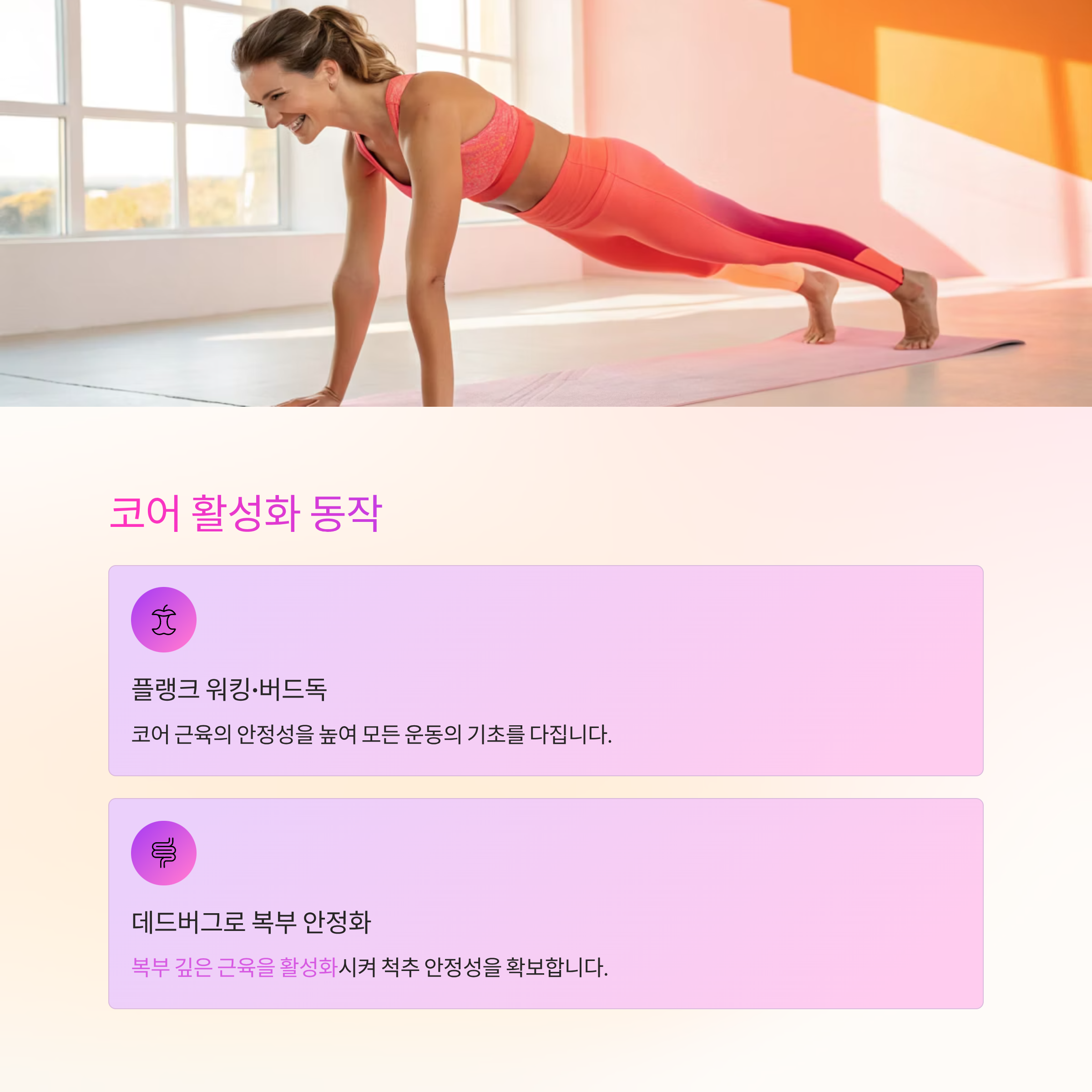 | 하루 5분 투자로 만드는 강한 중심, 1일 코어 강화 프로그램 (0) | 2025.10.13 |