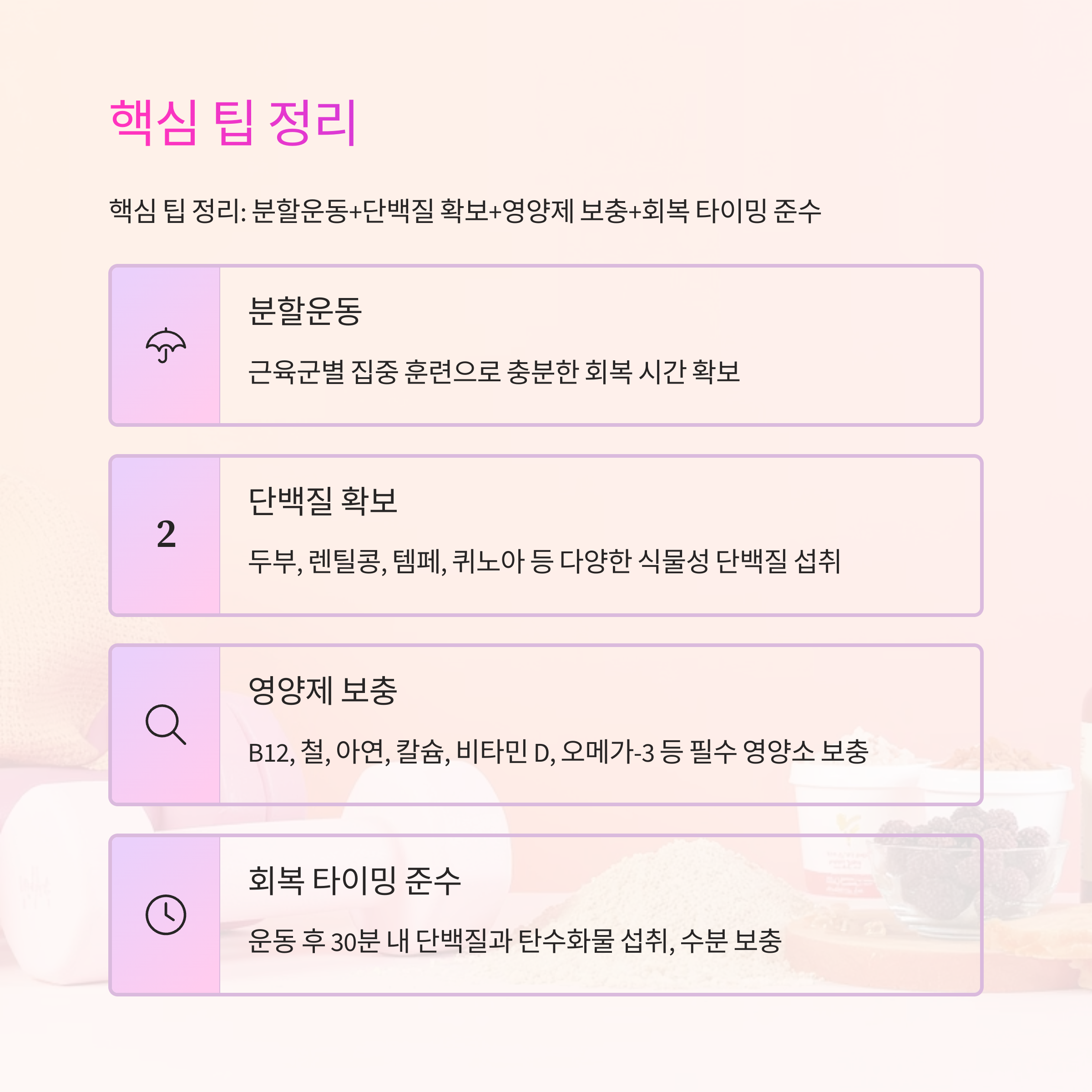 ✅ 7. 비건 근력운동 핵심 팁 요약