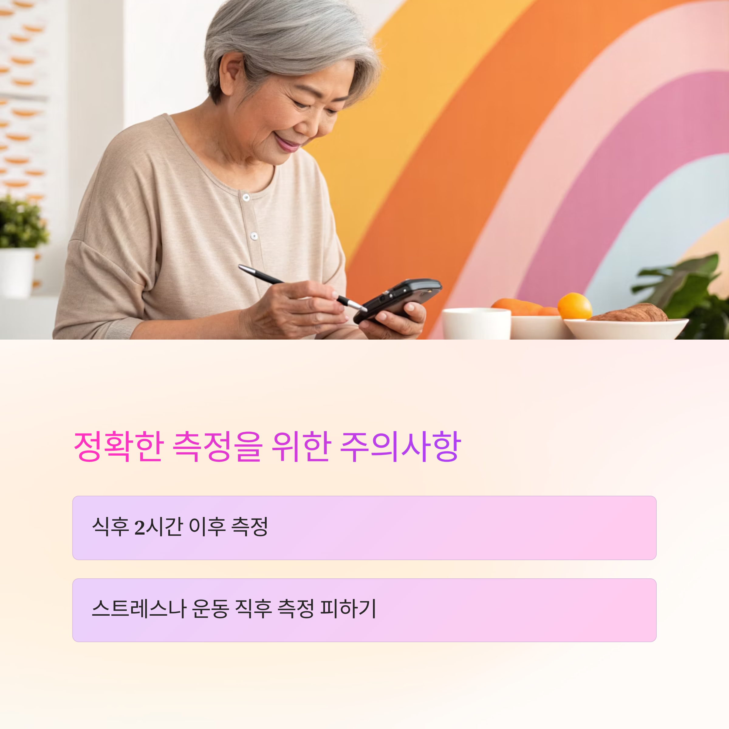 1. 하루 2회 같은 시간대 측정: 공복과 식후를 비교하세요.