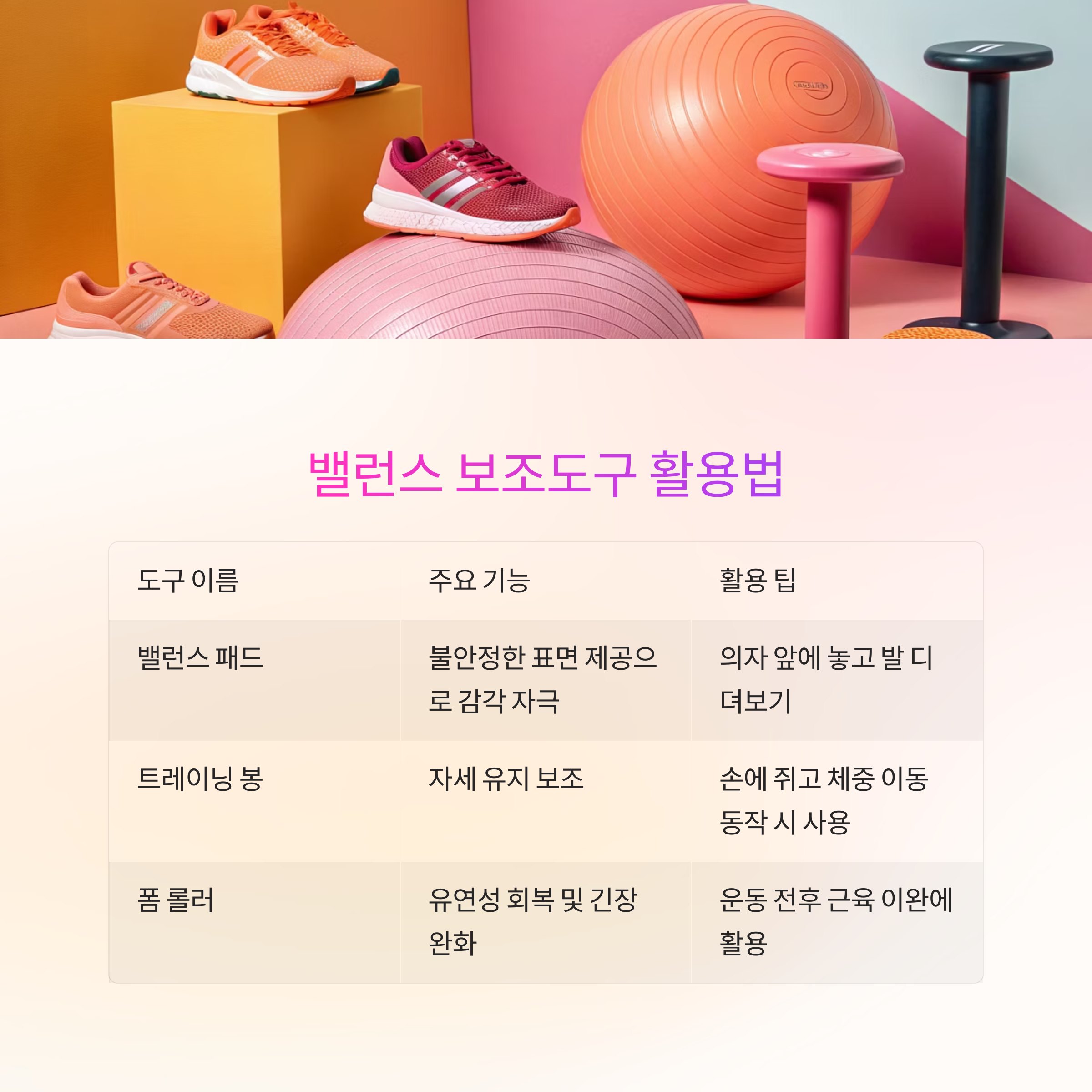 밸런스 훈련에 도움이 되는 보조도구는