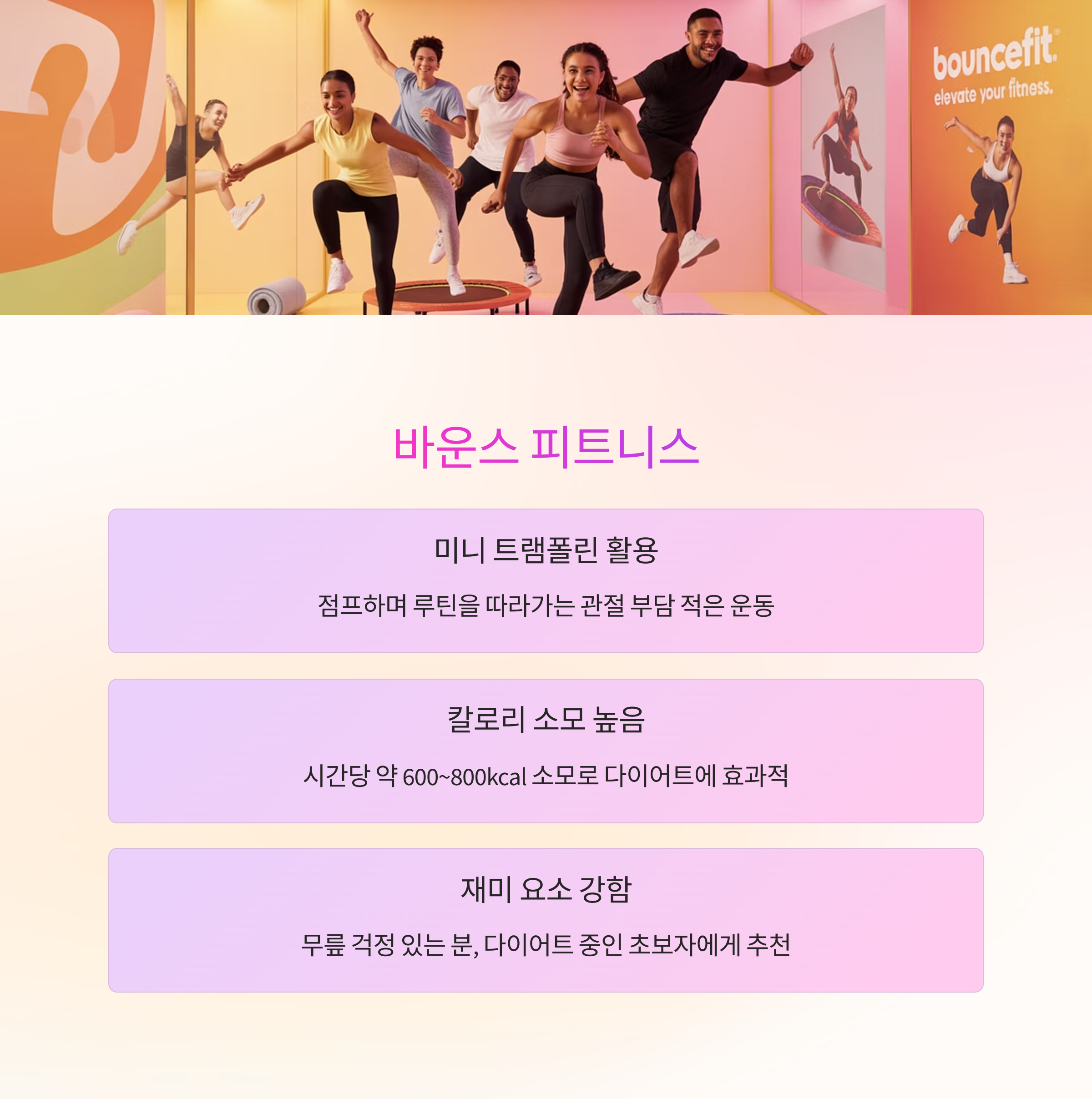 4. 바운스 피트니스 (미니 트램폴린 활용)