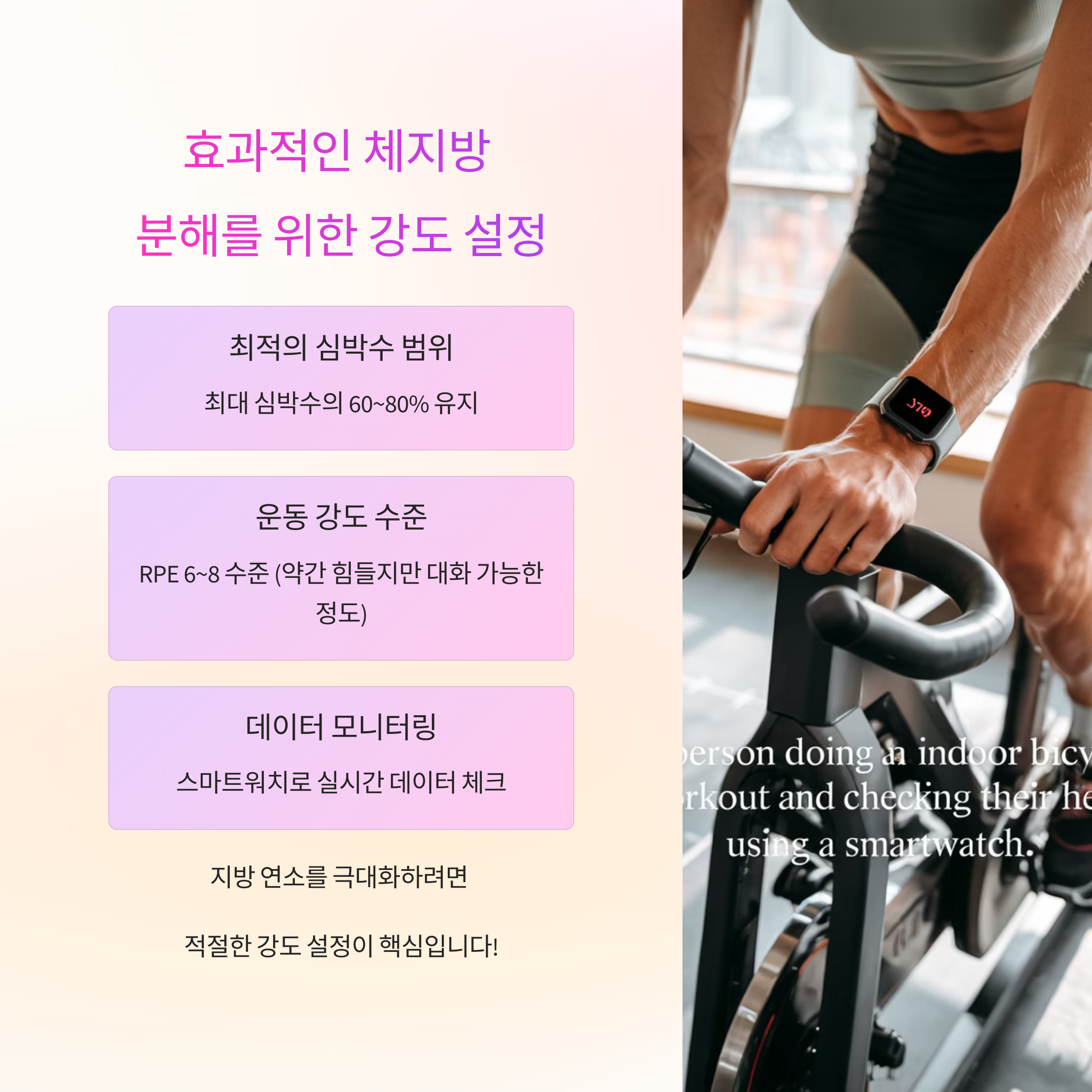 효율적인 체지방 연소를 위해서는 "운동 강도 설정"이 핵심입니다.