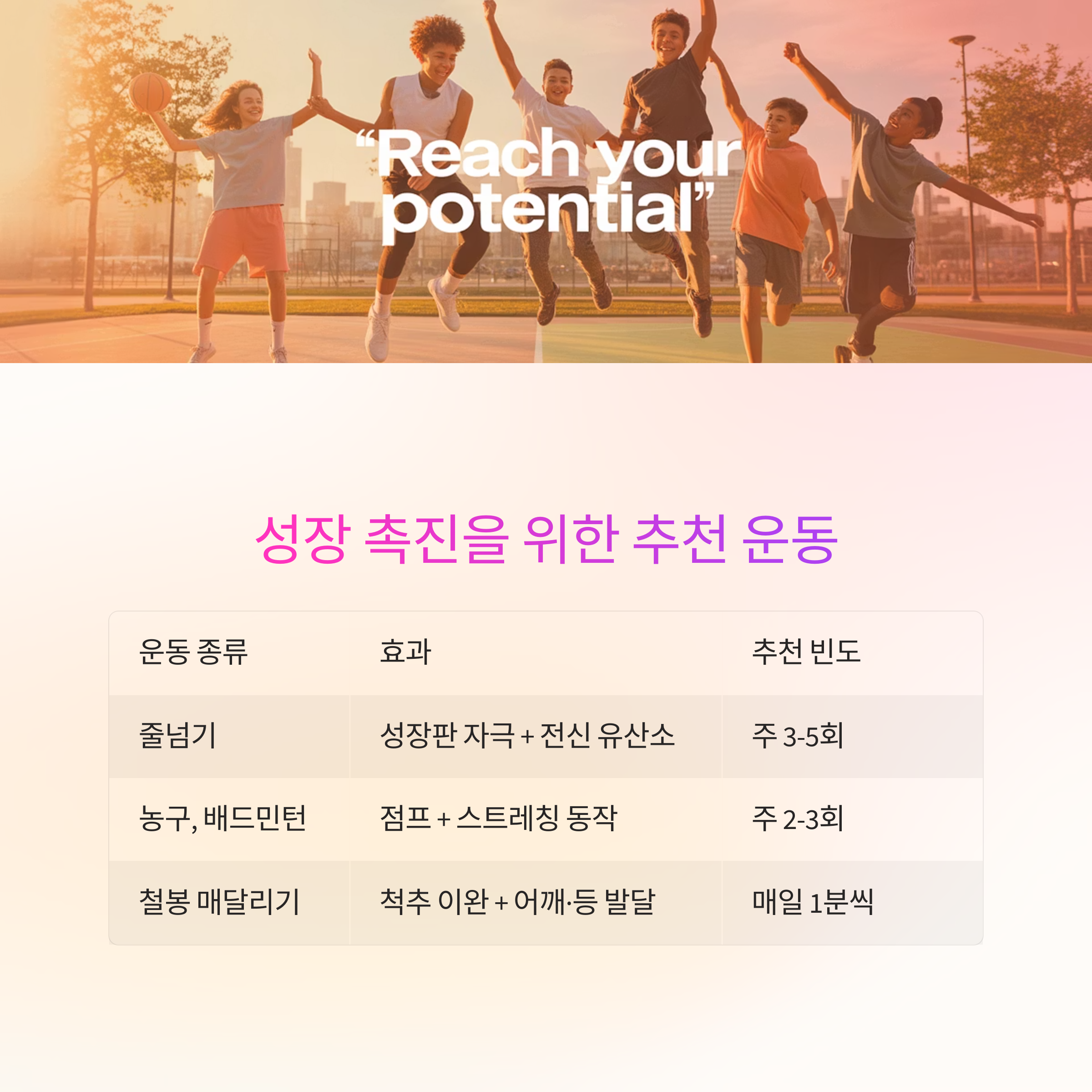 성장 촉진을 위한 추천 운동 유형