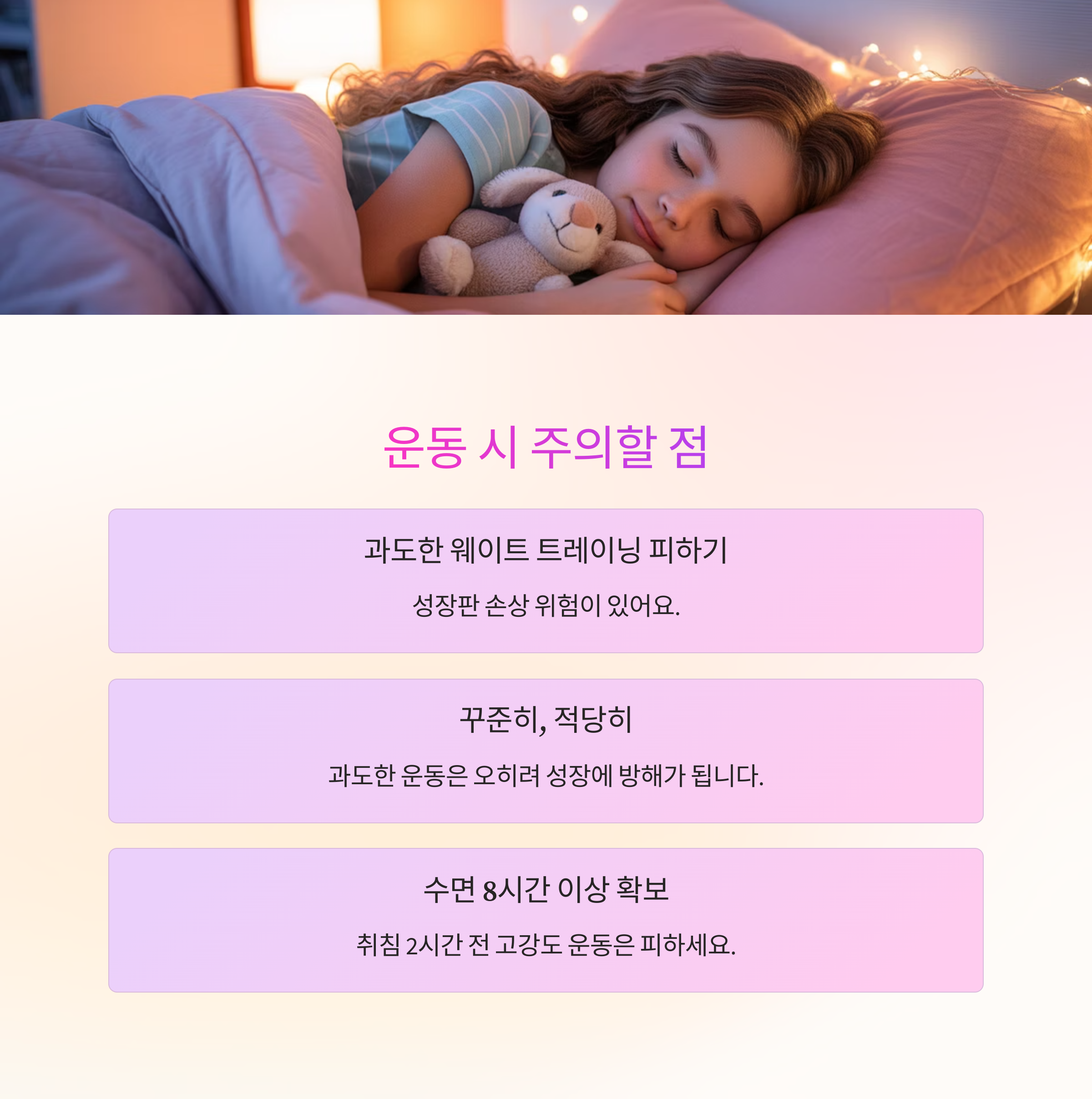 - 성장기일수록 운동-수면-식사 균형이 핵심