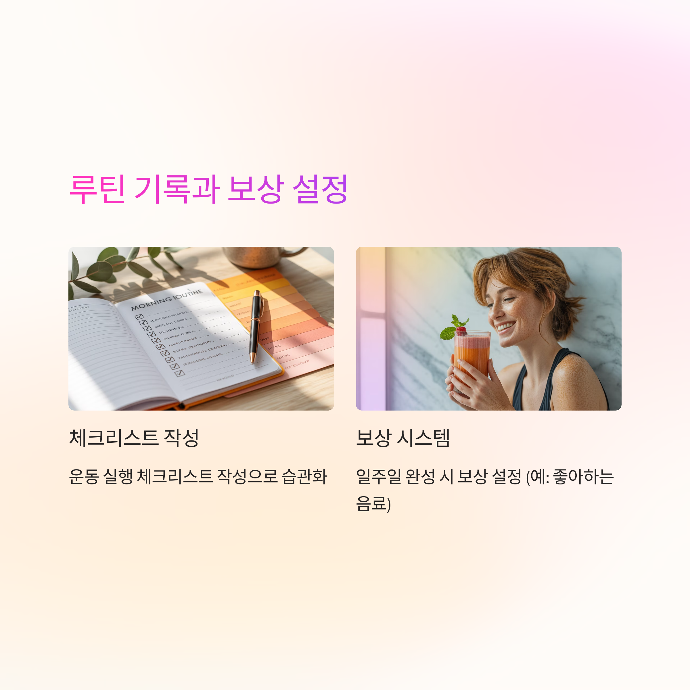 매일 루틴 실행 기록하고, 1주 단위로 나만의 보상을 설정해 꾸준함을 유지하세요.