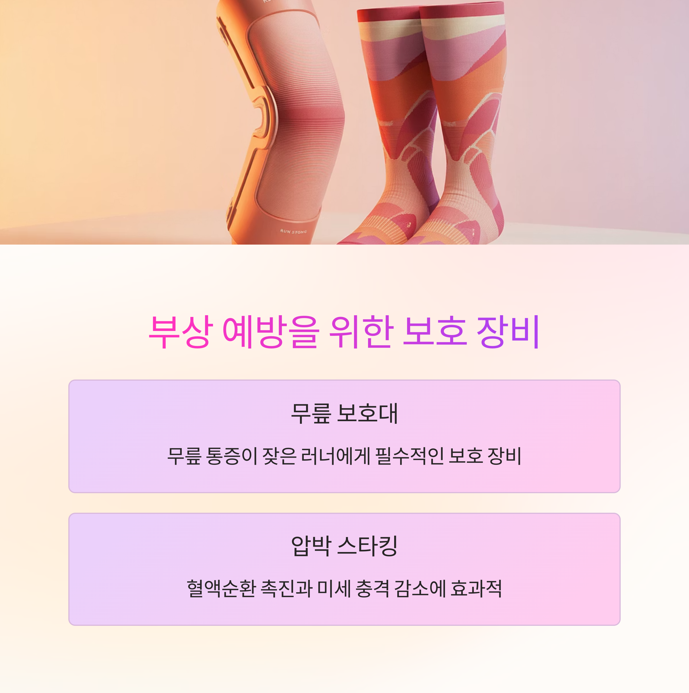 혈액순환을 촉진하고, 미세한 충격을 줄여 부상 예방에 효과적입니다.