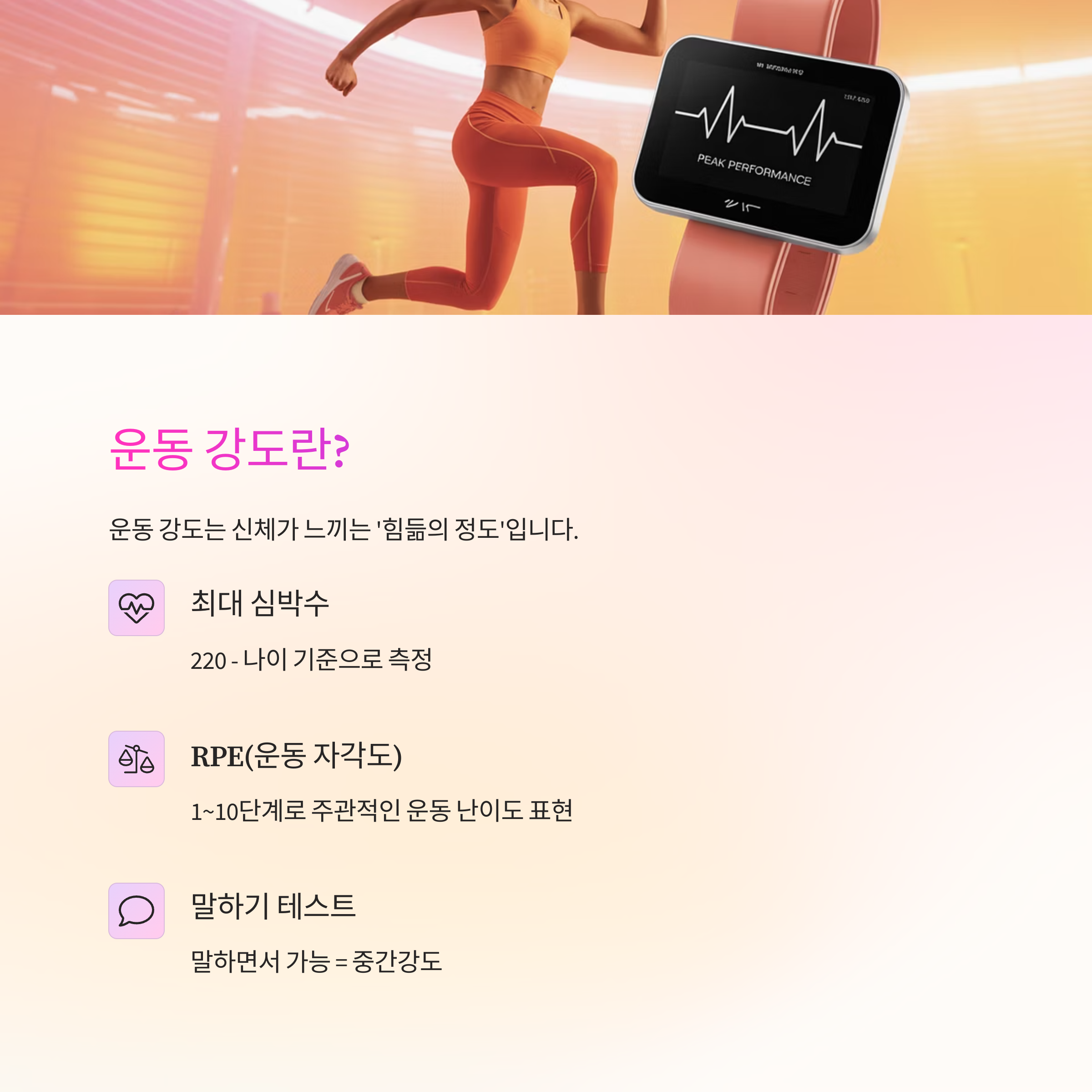 운동 강도는 쉽게 말해 **신체가 느끼는 '힘듦의 정도'**입니다.
