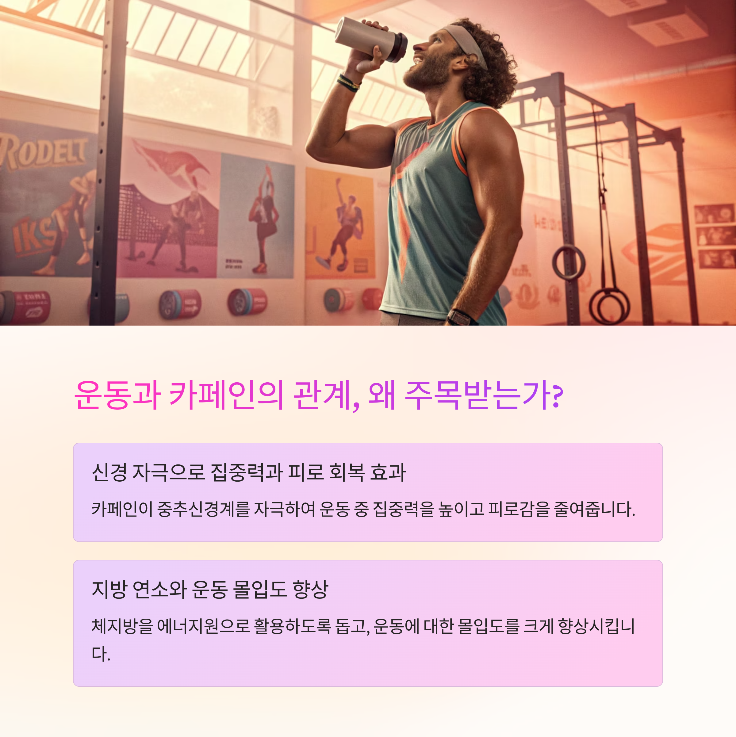 자신의 체질과 목적에 맞는 카페인 활용은 운동 효율을 극대화합니다.