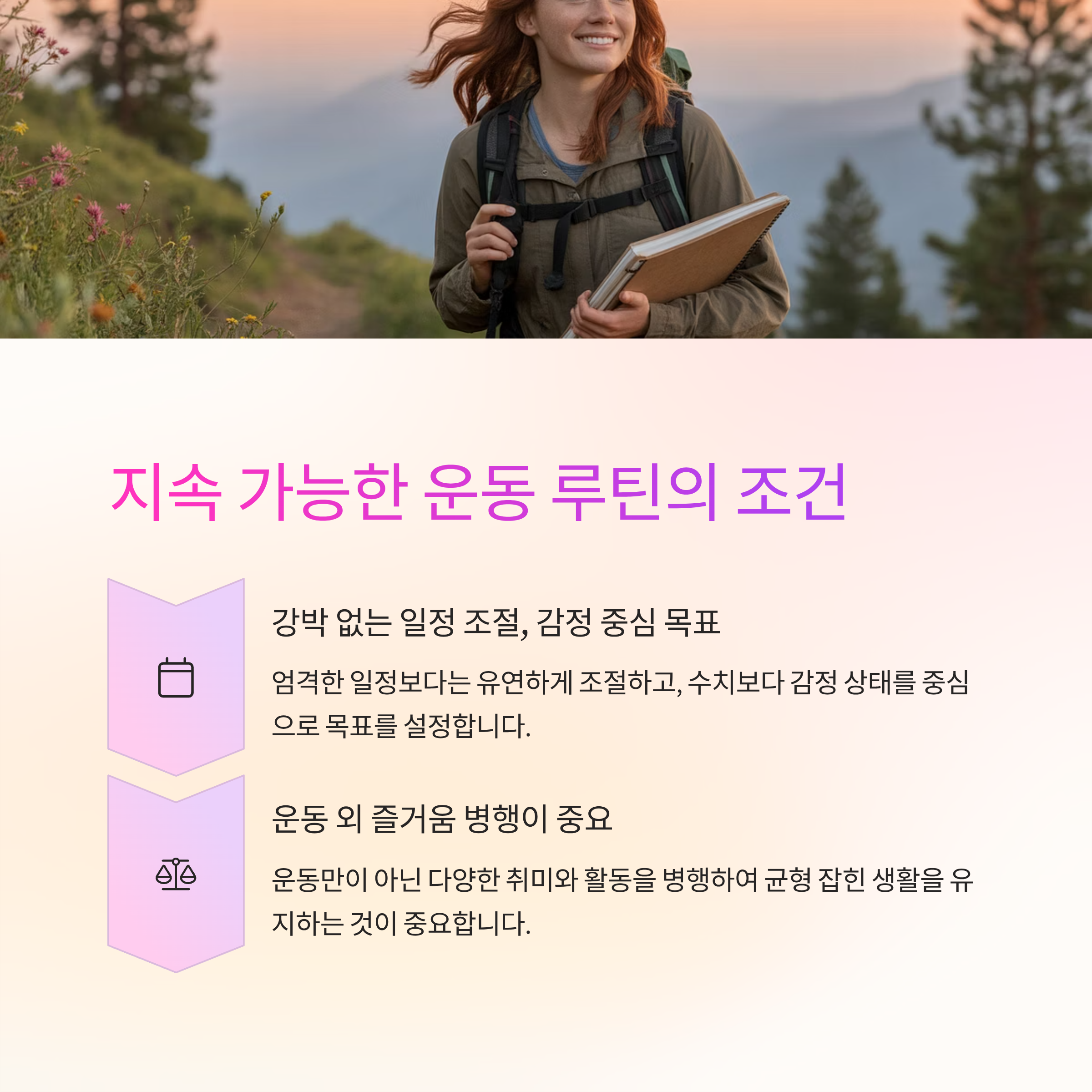 운동을 오래 즐기기 위해선 유연하고 균형 잡힌 루틴이 중요합니다. 아래 조건들을 점검해보세요.