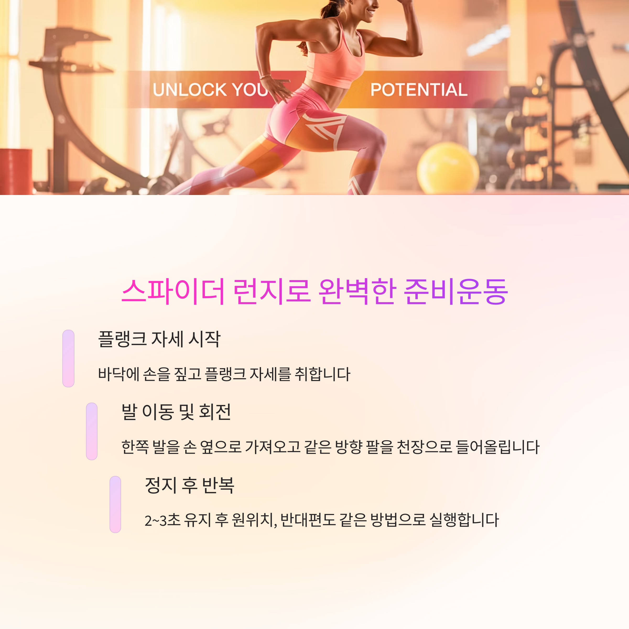 2. 준비운동 마무리용 '스파이더 런지 + 회전' 동작