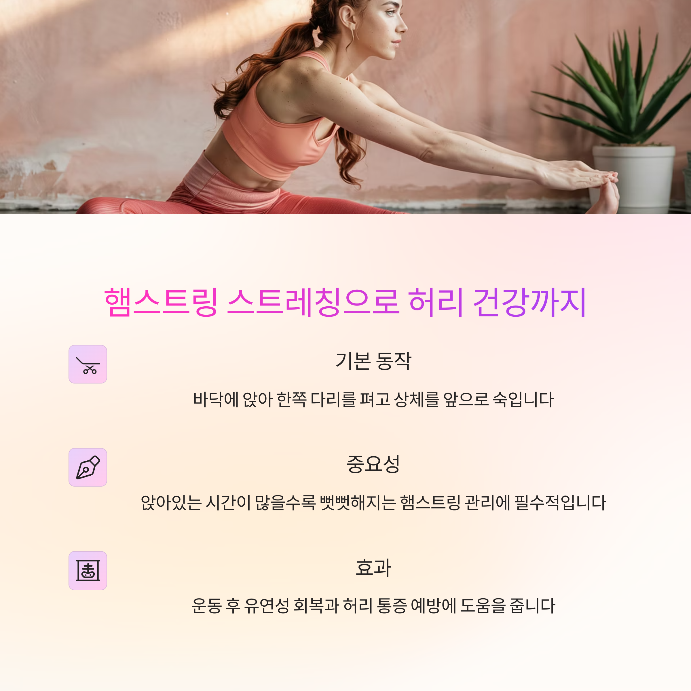 "운동 후 통증 예방과 혈액 순환을 위한 핵심 동작입니다."