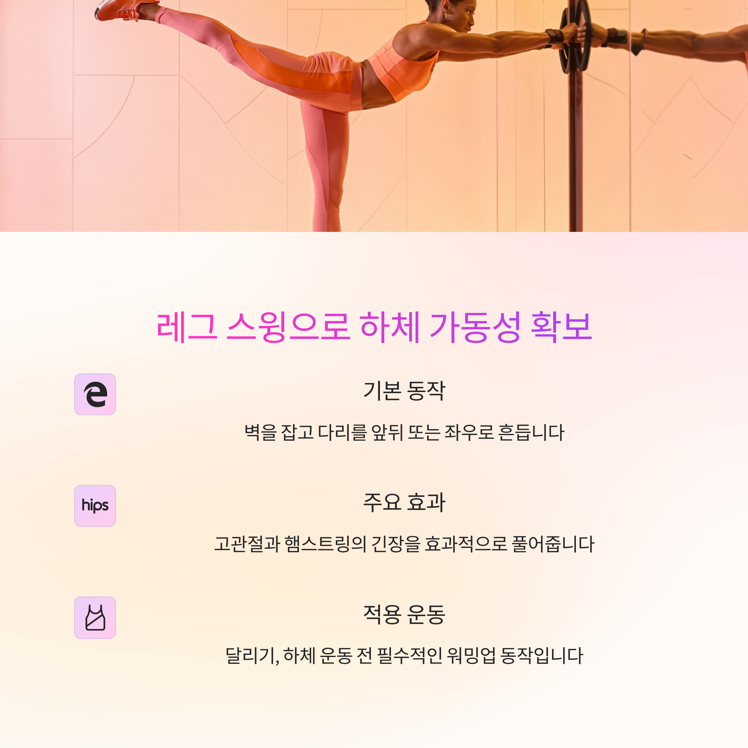 5. 운동 전 추천: ‘레그 스윙’으로 하체 가동성 확보