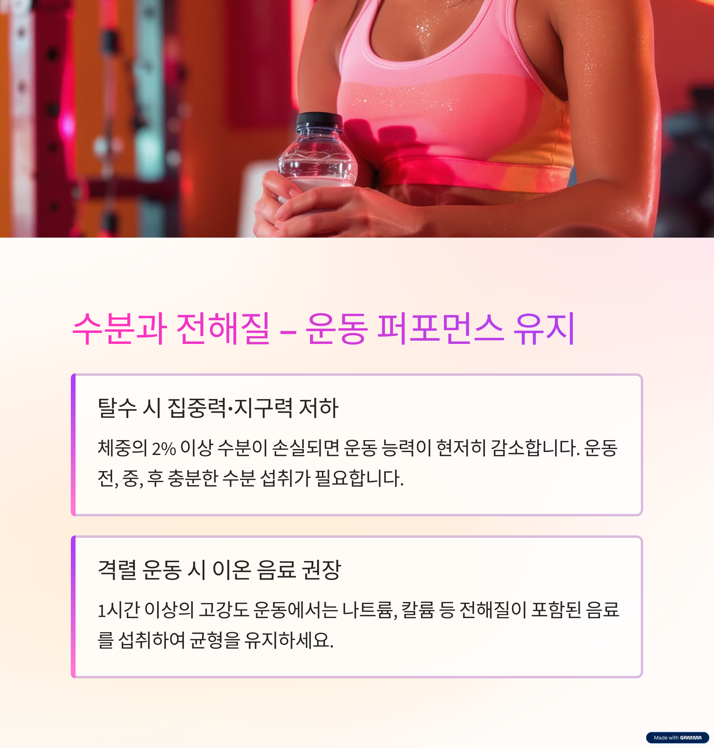 💧 수분과 전해질 – 운동 퍼포먼스 유지