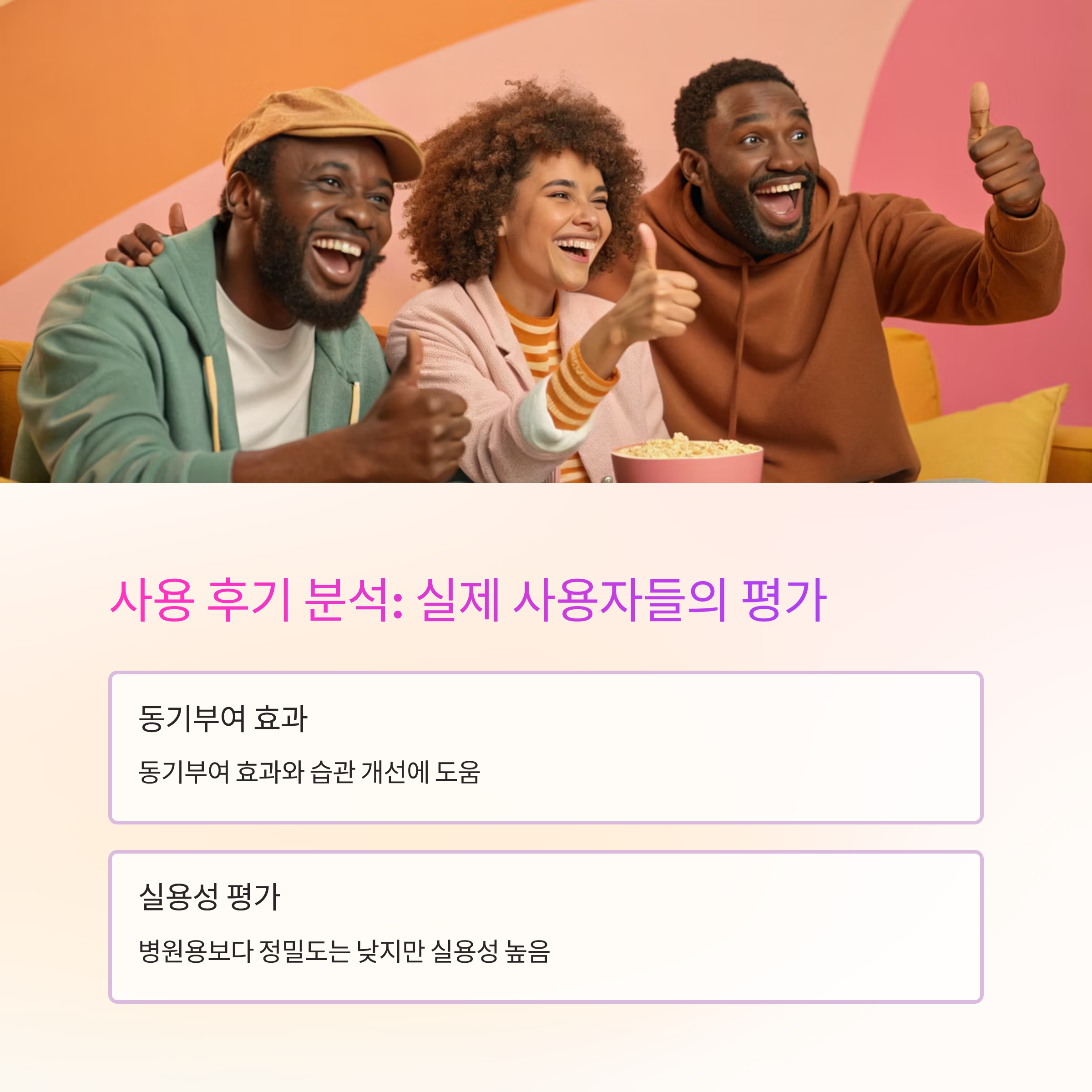 특히 꾸준히 측정한 사용자일수록 ‘동기 부여’와 ‘습관 형성’에 큰 도움이 되었다고 평가합니다.