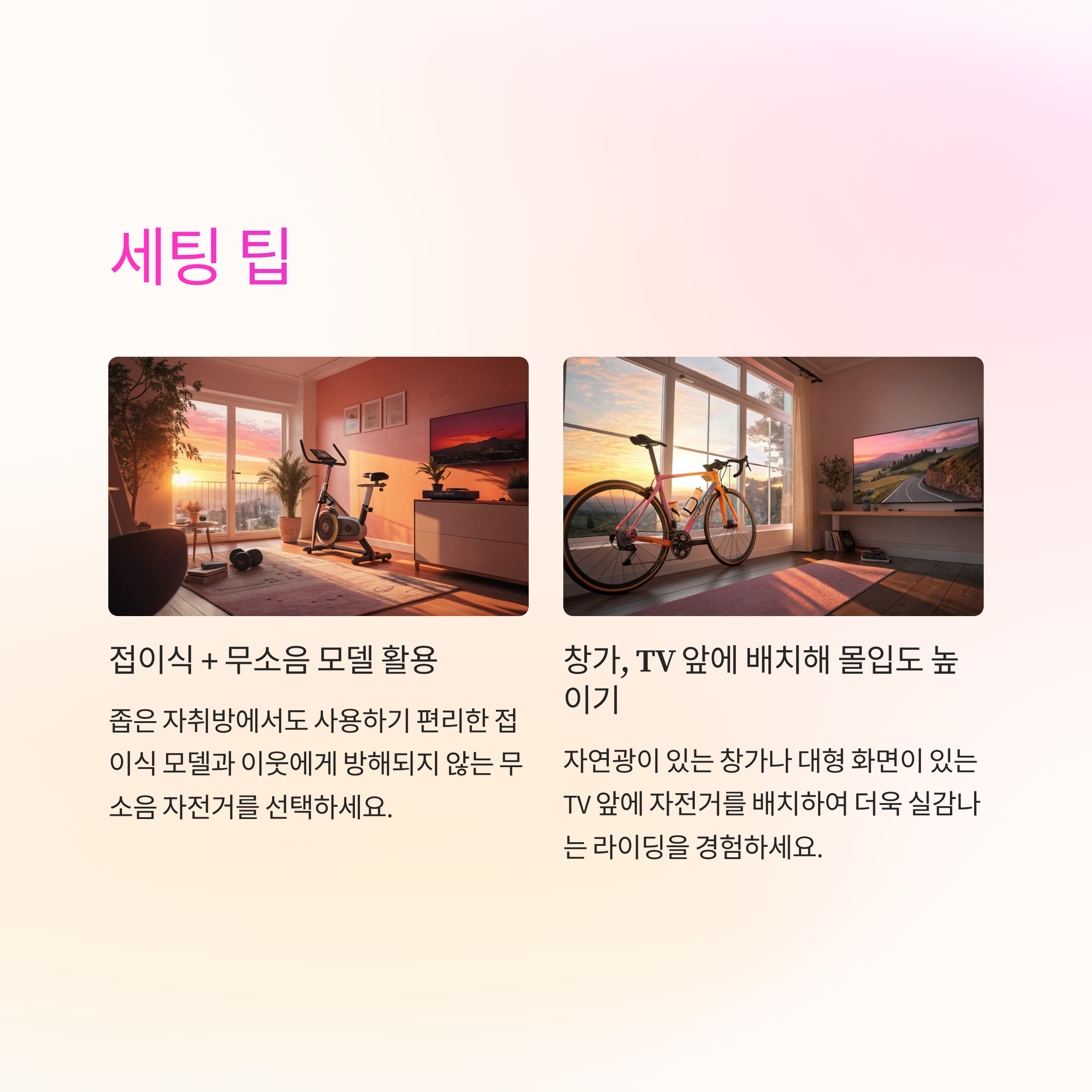 좁은 자취방에서도 충분히 세팅할 수 있는 소형 실내 자전거와 공간 활용 팁을 정리했습니다.