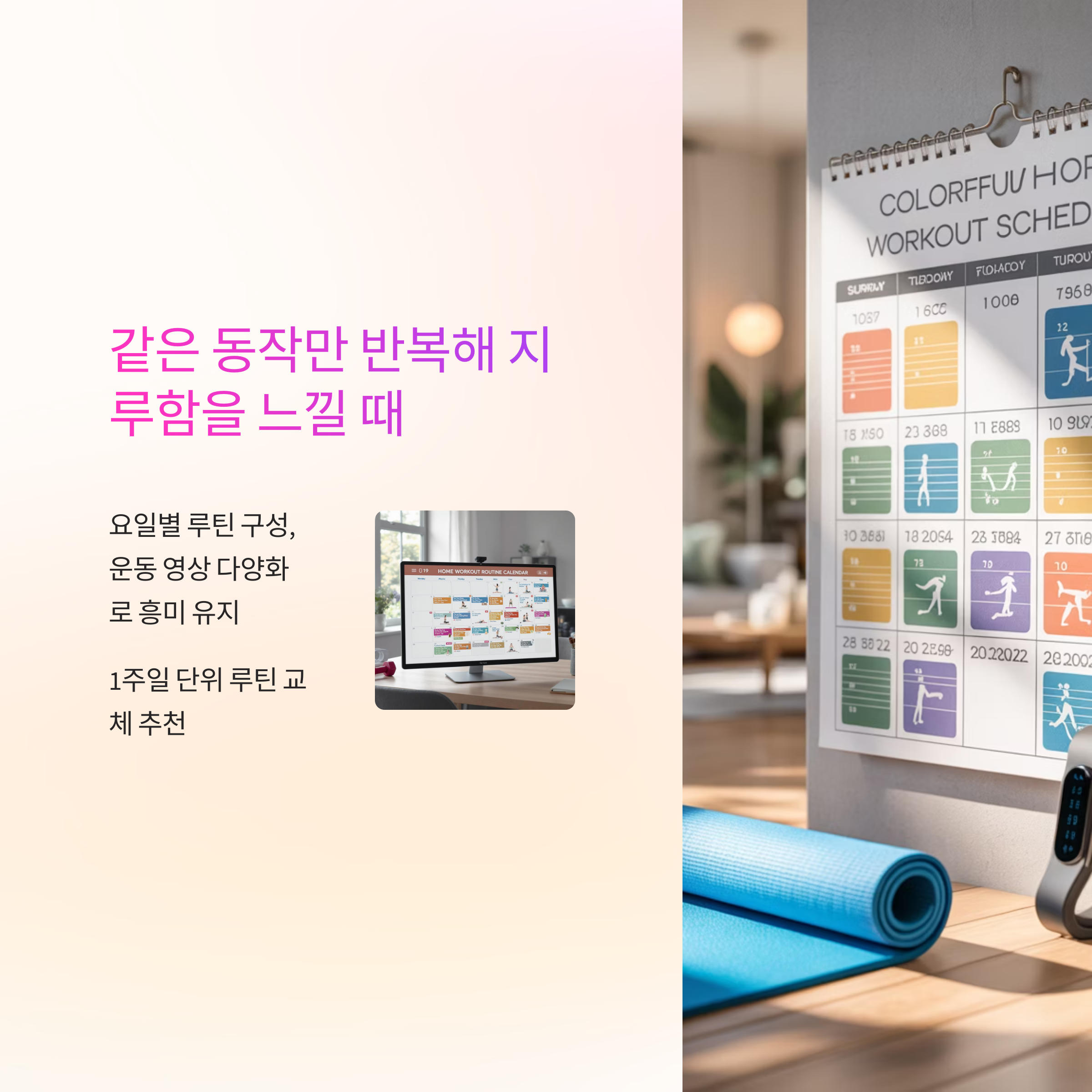 매일 같은 영상이나 루틴은 금세 질려 중도 포기의 원인이 됩니다.