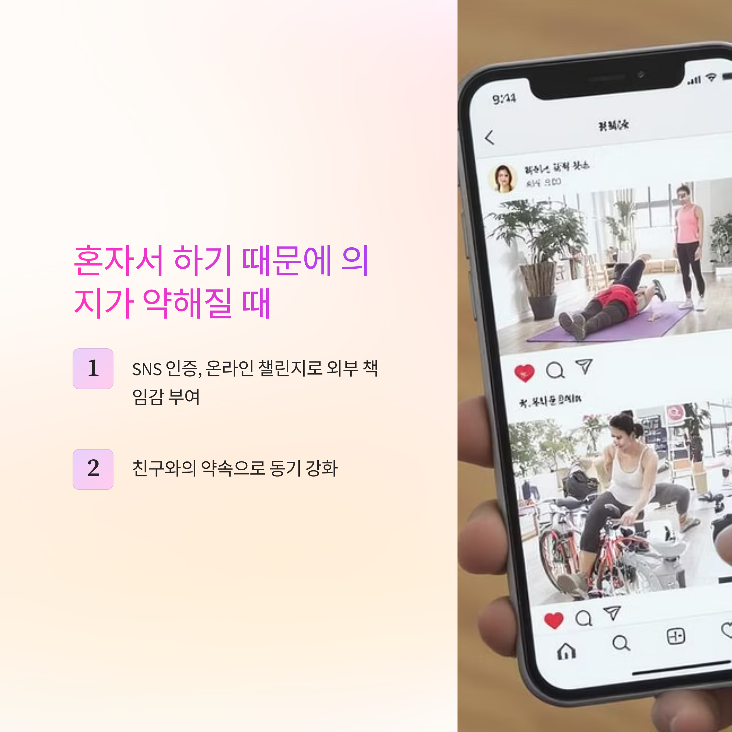 하지만 SNS에 인증하거나 지인과 온라인 챌린지를 진행하면 책임감과 응원을 함께 받을 수 있습니다.