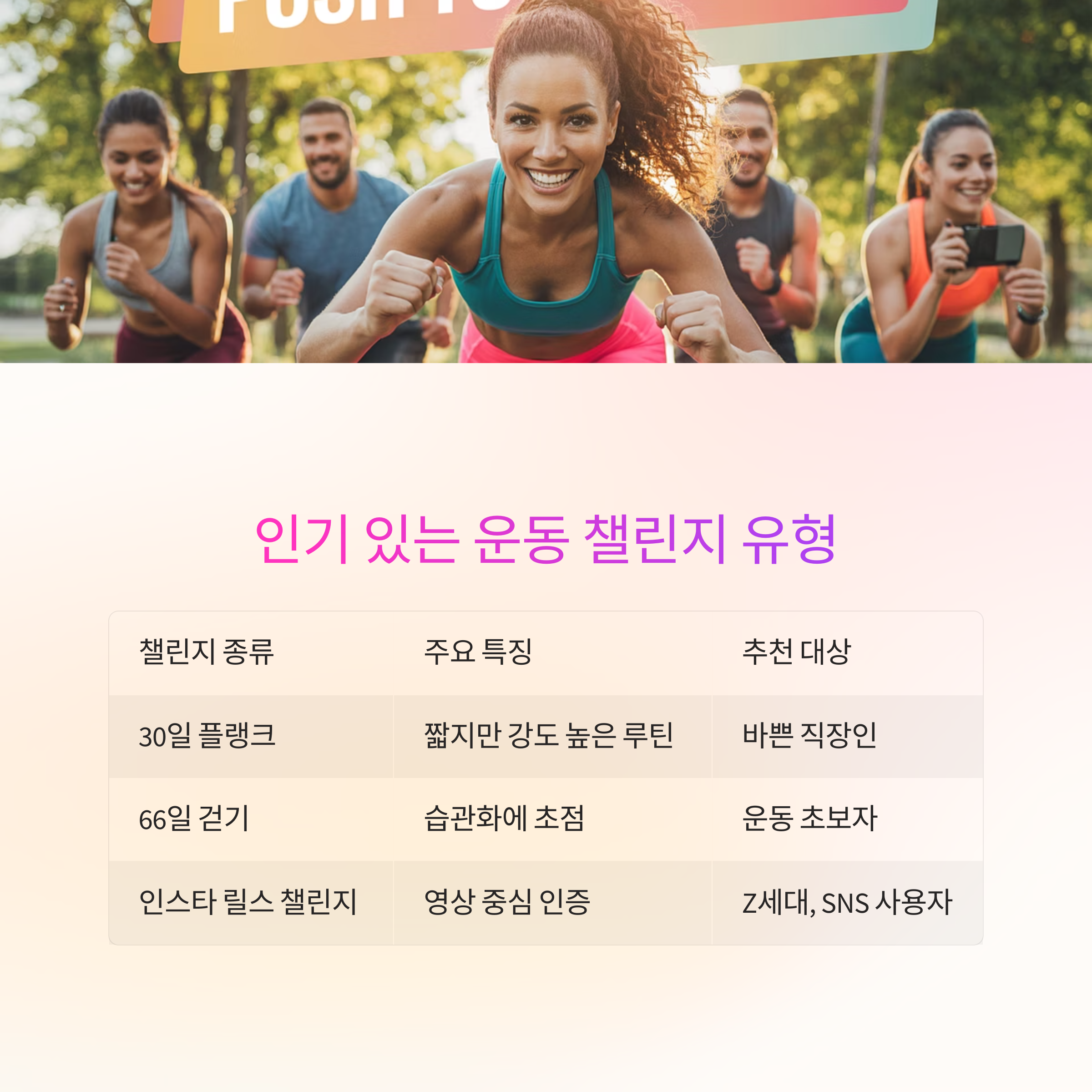 인기 있는 운동 챌린지 유형들