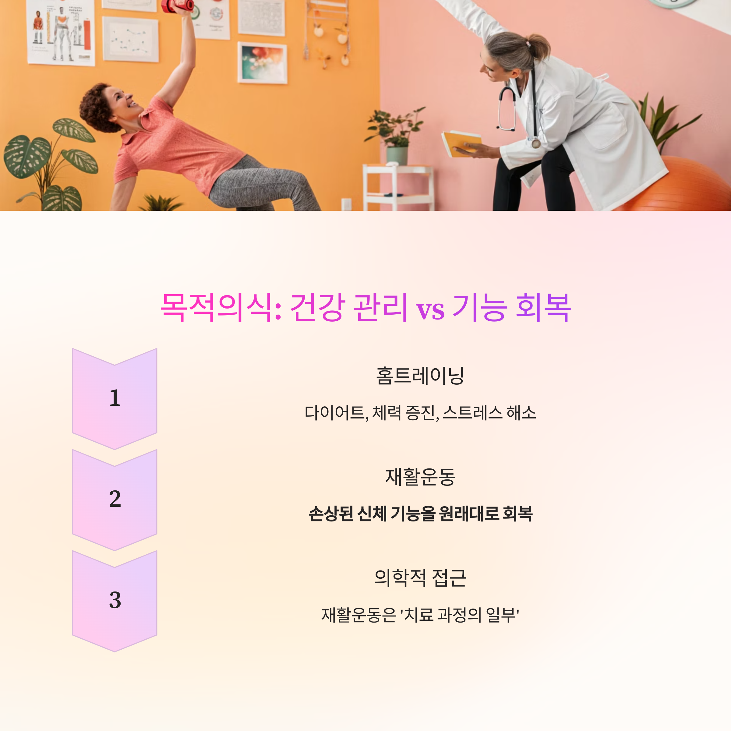 목적의식이 다르다 : 건강 관리 vs 기능 회복