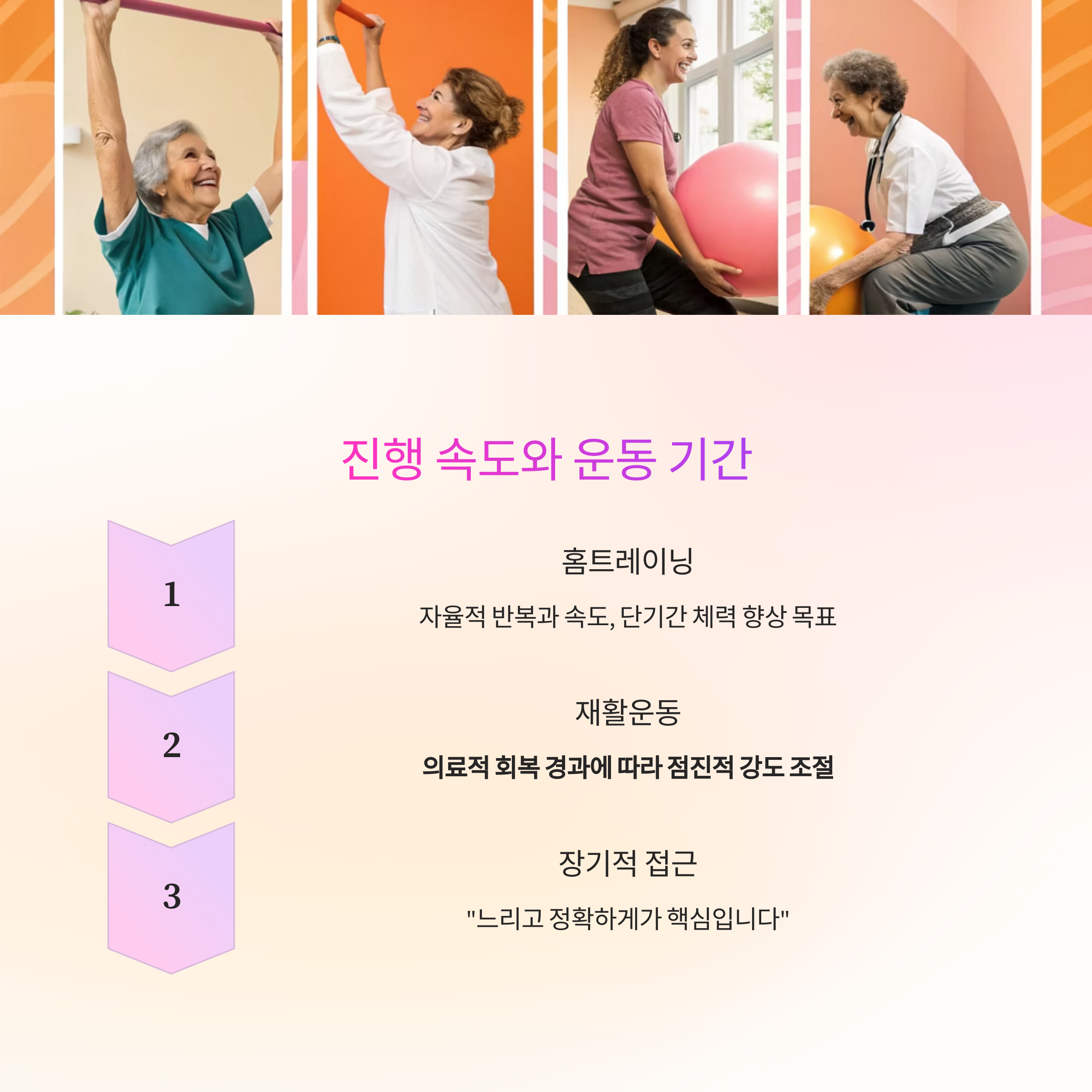 재활운동의 효과는 고통이 아닌 '통증 완화와 기능 회복'으로 나타나야 합니다.