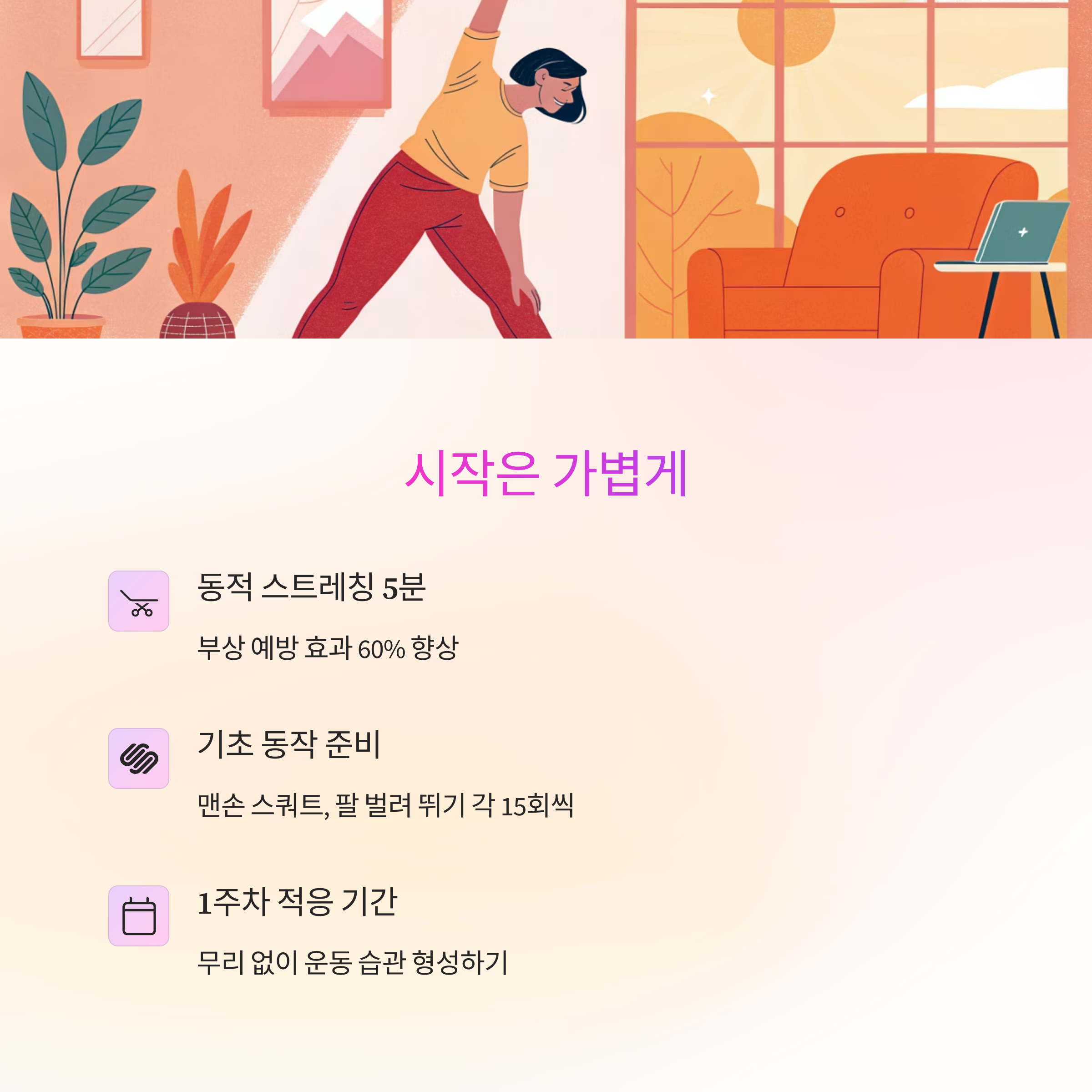"부담 없는 시작이 운동 지속의 열쇠입니다".