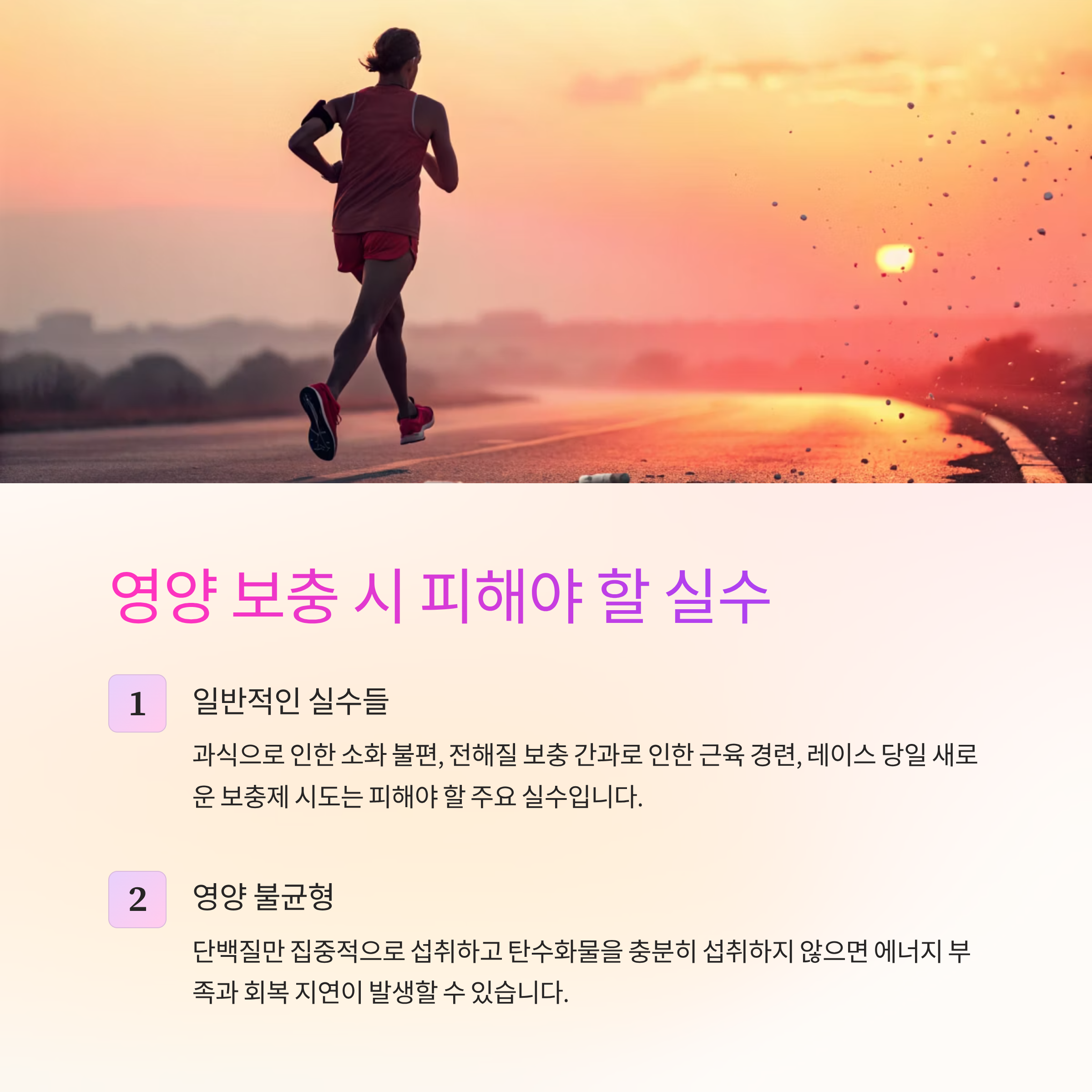 - 러닝 후 단백질만 섭취하고 탄수화물 보충 누락 — 회복 지연