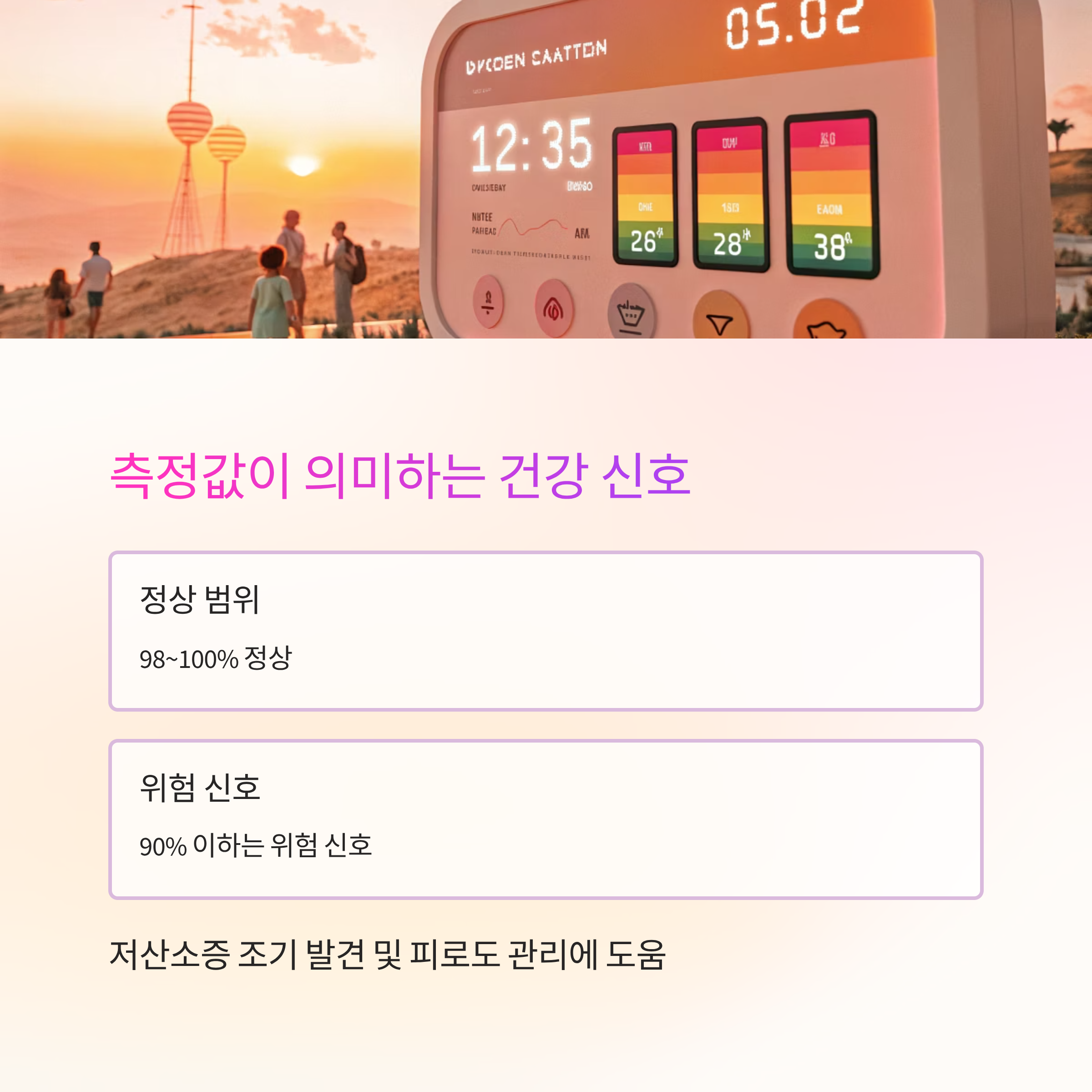 혈중산소 측정은 호흡기 건강과 피로, 스트레스 관리의 핵심입니다.