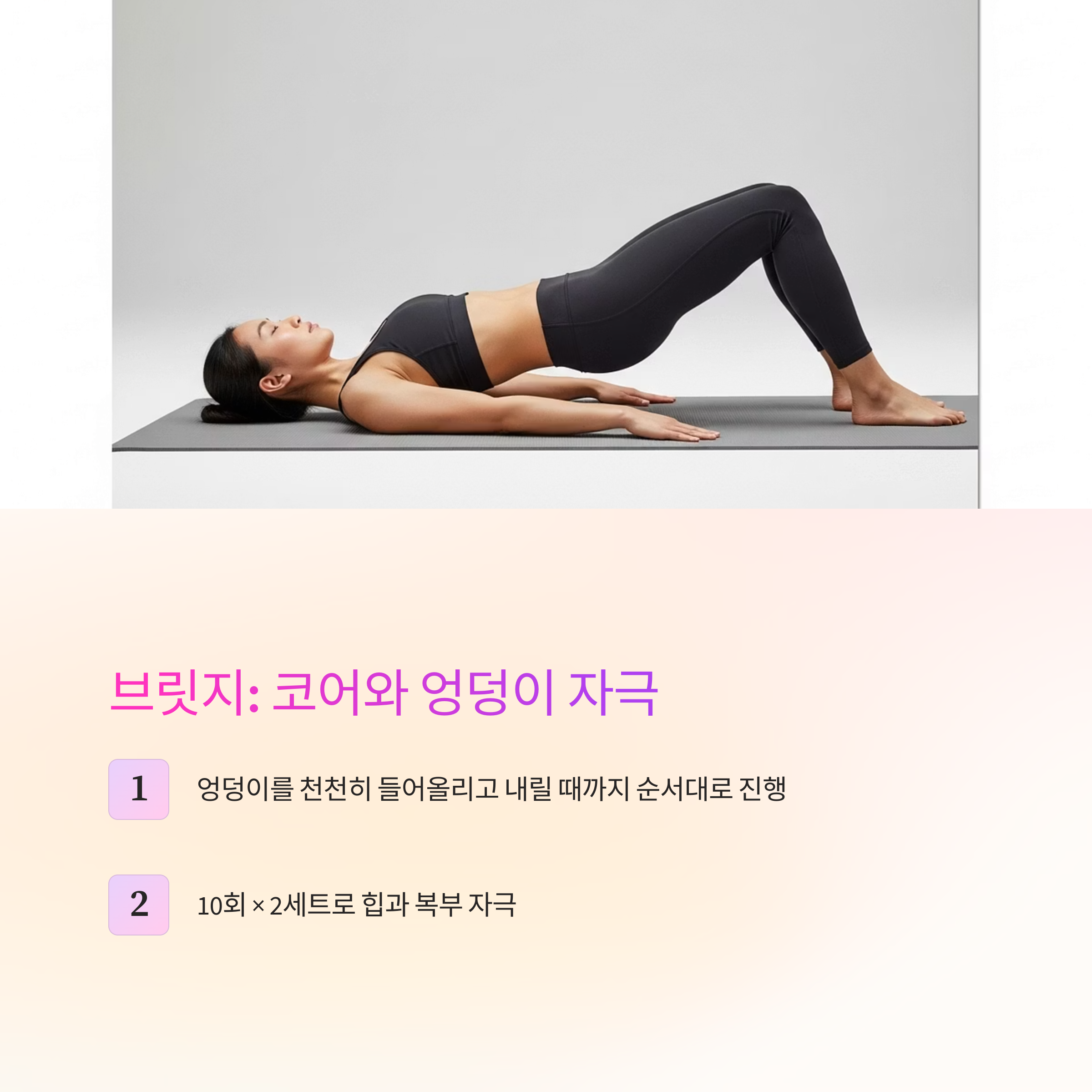 브릿지 골반 안정 + 엉덩이 자극 10회 × 2세트