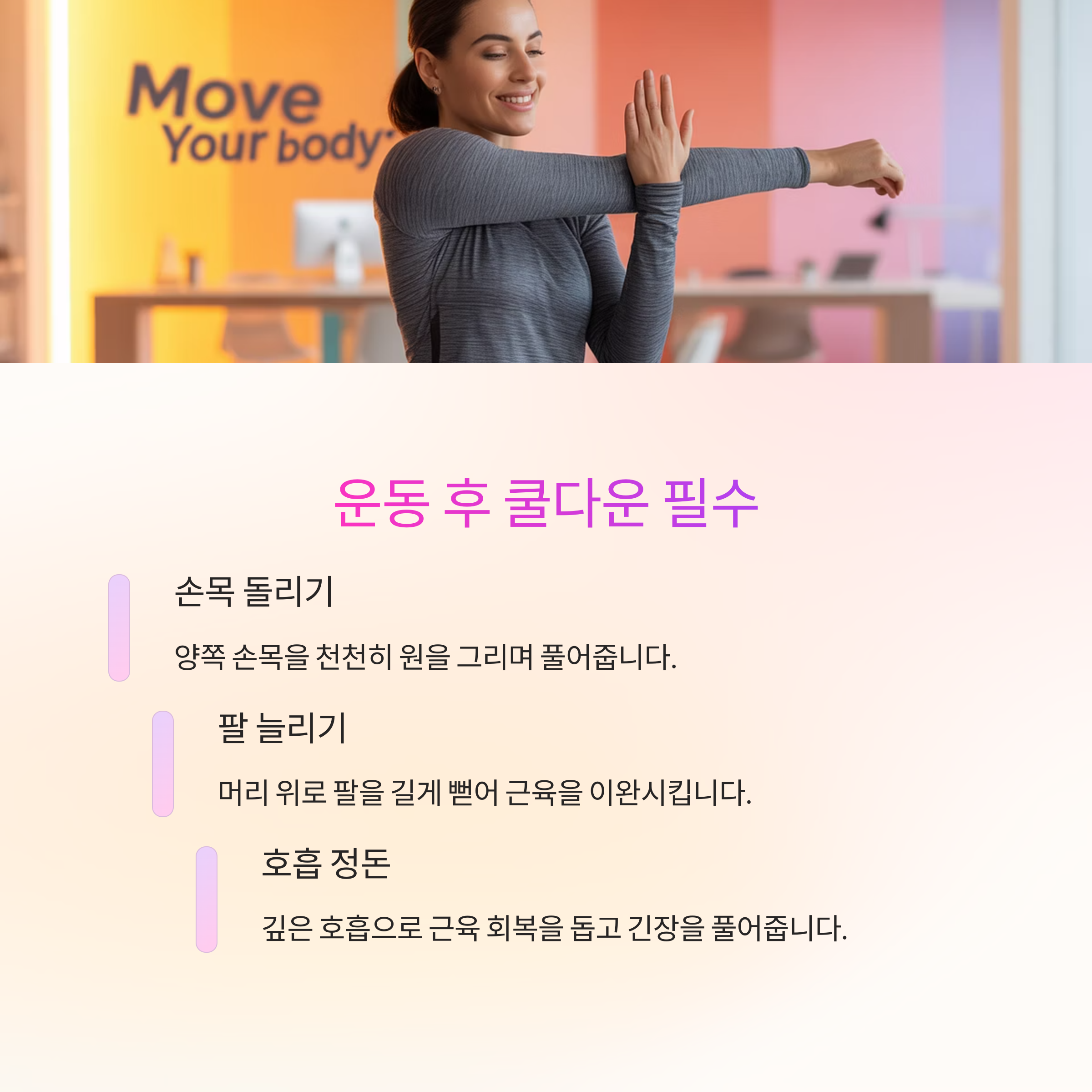 "운동 후 이완은 근육 회복을 돕고,