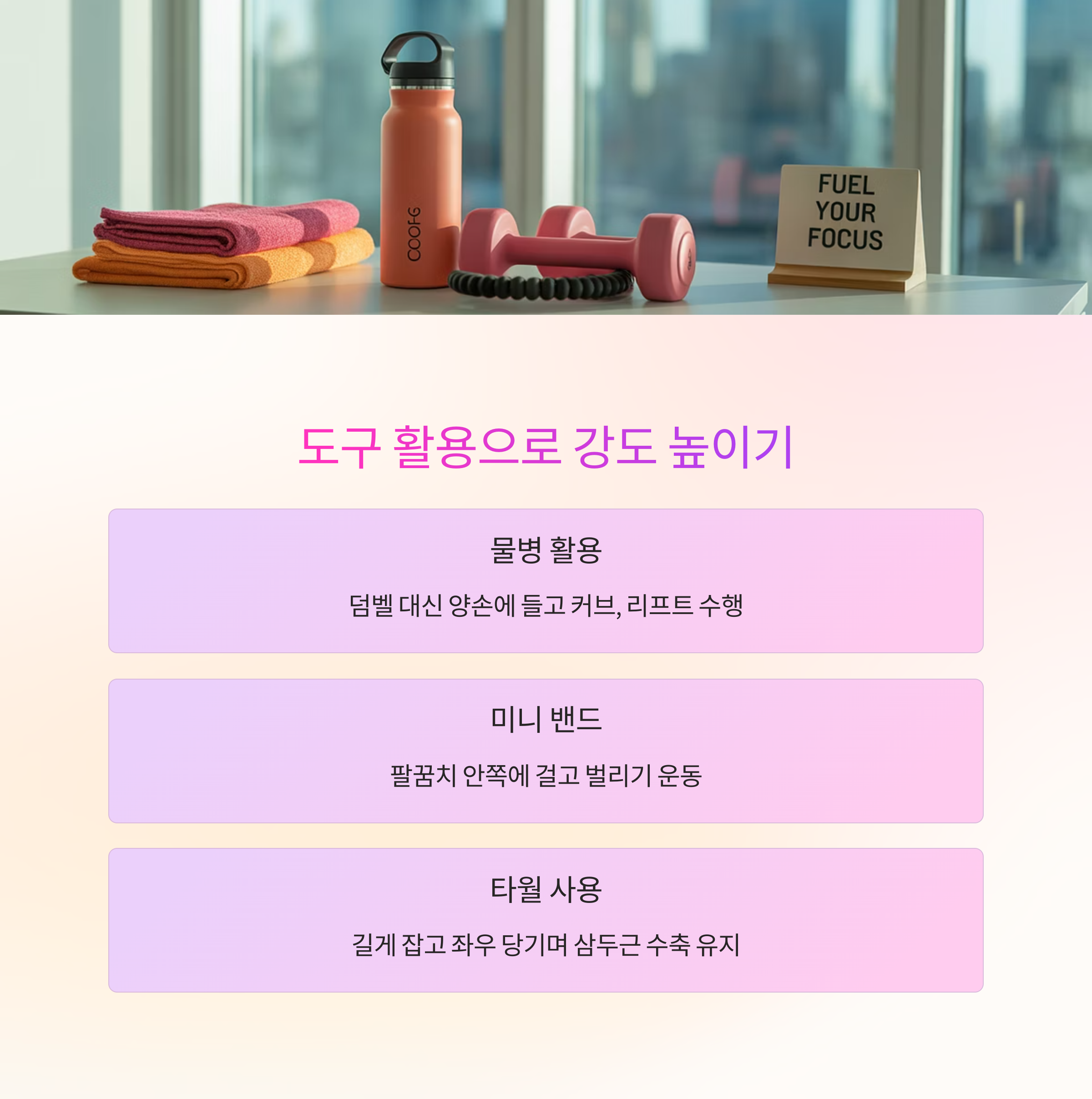 이 글에서는 책상 앞, 실내, 사무실 어디서든 가능한 팔 운동 루틴을 소개합니다.